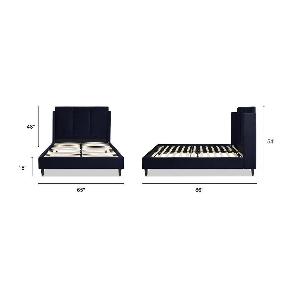 - Tall headboard design with wingback shelter wings