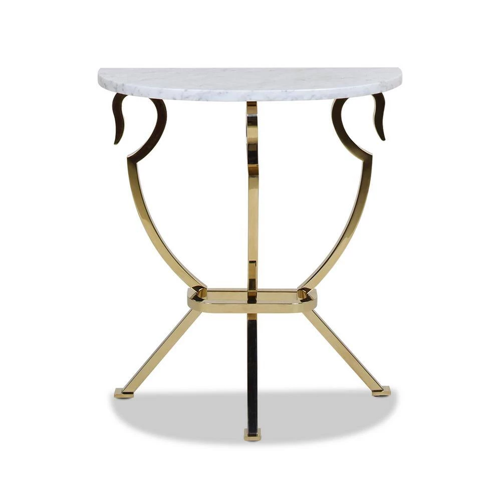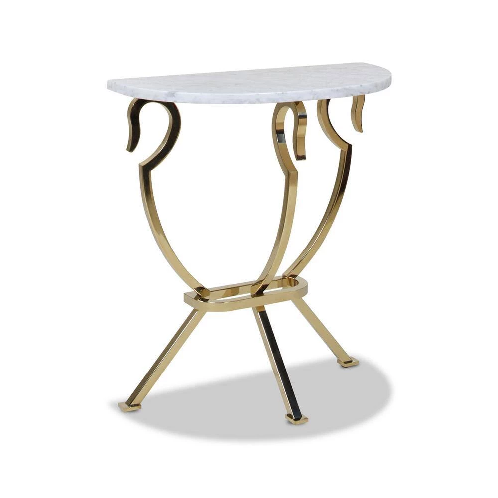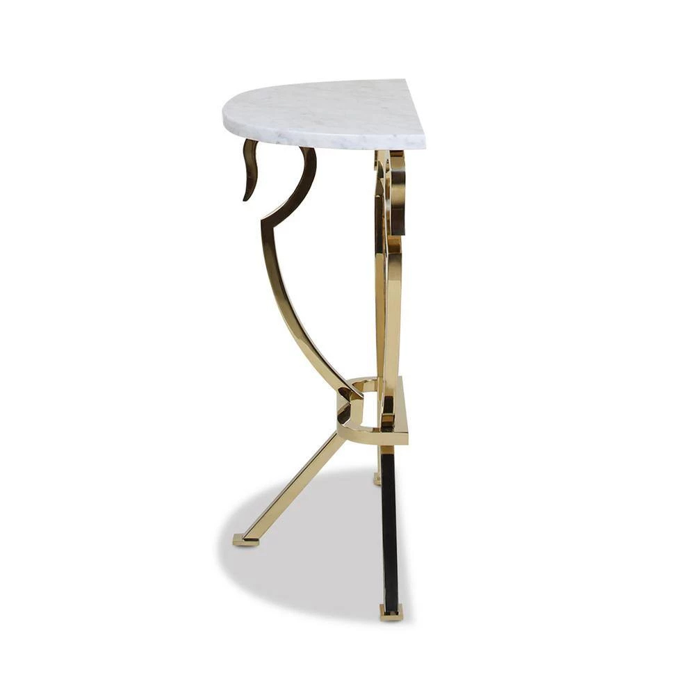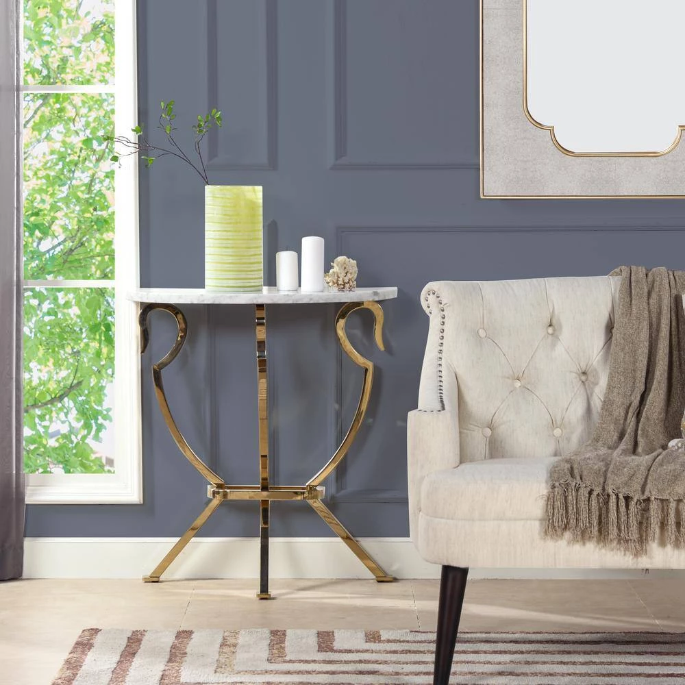 For a beautiful statement piece for any part of the home, look to the Athens Console Table by JTH Luxe. The sculpted stainless steel legs in a glimmering metallic gold are topped with a genuine white marble slab that brings a heightened sense of luxury wherever this table is placed. Shaped in a half-moon silhouette, this console can be used against any wall in the entryway, living room, or hallway. Pair 2-together for a truly glamorous statement.