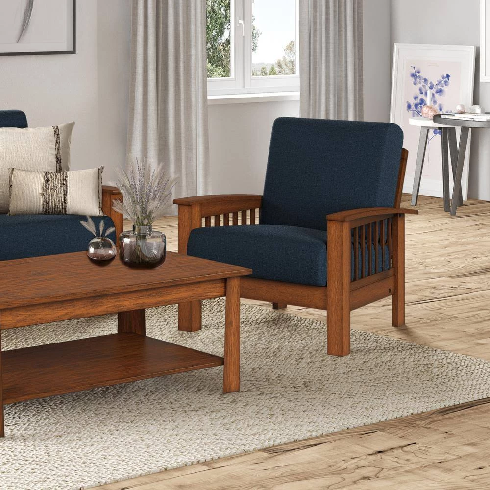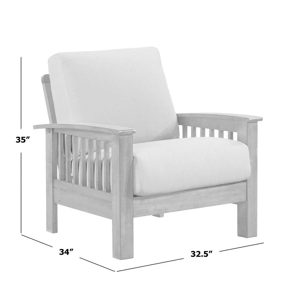 The Buena Vista arm chair boasts an updated transitional design that will elevate your home. The chair features comfortable box cushions covered in a durable, easy clean 100% polyester linen-like fabric on a wood exposed frame that evokes a modern mission style feel. Takes less than 30 minutes to assemble with included instructions. Phillips screwdriver is needed – not included. Imported, color may vary.