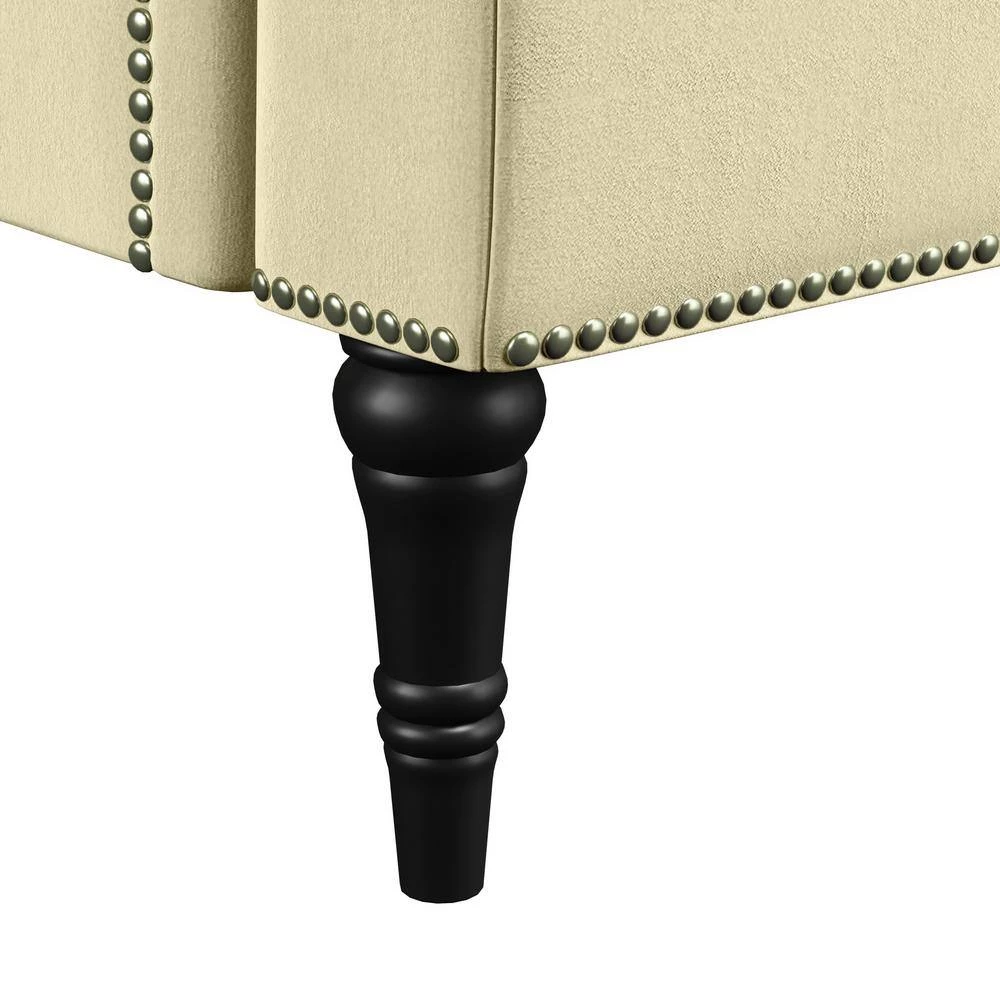 - Turned legs made from solid wood in a matte black finish complement overall refined aesthetic