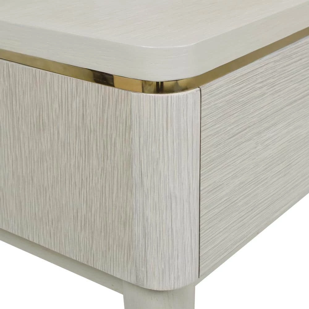 Establish a beautifully functional work area at home with the Willow 3-Drawer Desk by JTH Luxe. The pale neutral wood tones are complemented with gold hardware and accents, and finished with chic acrylic handles on the left and right drawers. The storage areas are perfect for organizing your papers, office supplies, and electronics, and the generously sized flat surface is ideal for finishing up work from home.