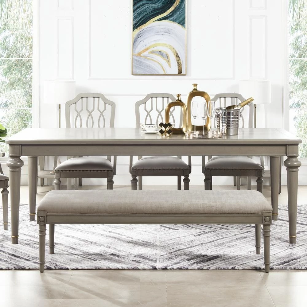 - Matching dining arm chairs, side chairs and bench available for a banquette seating set