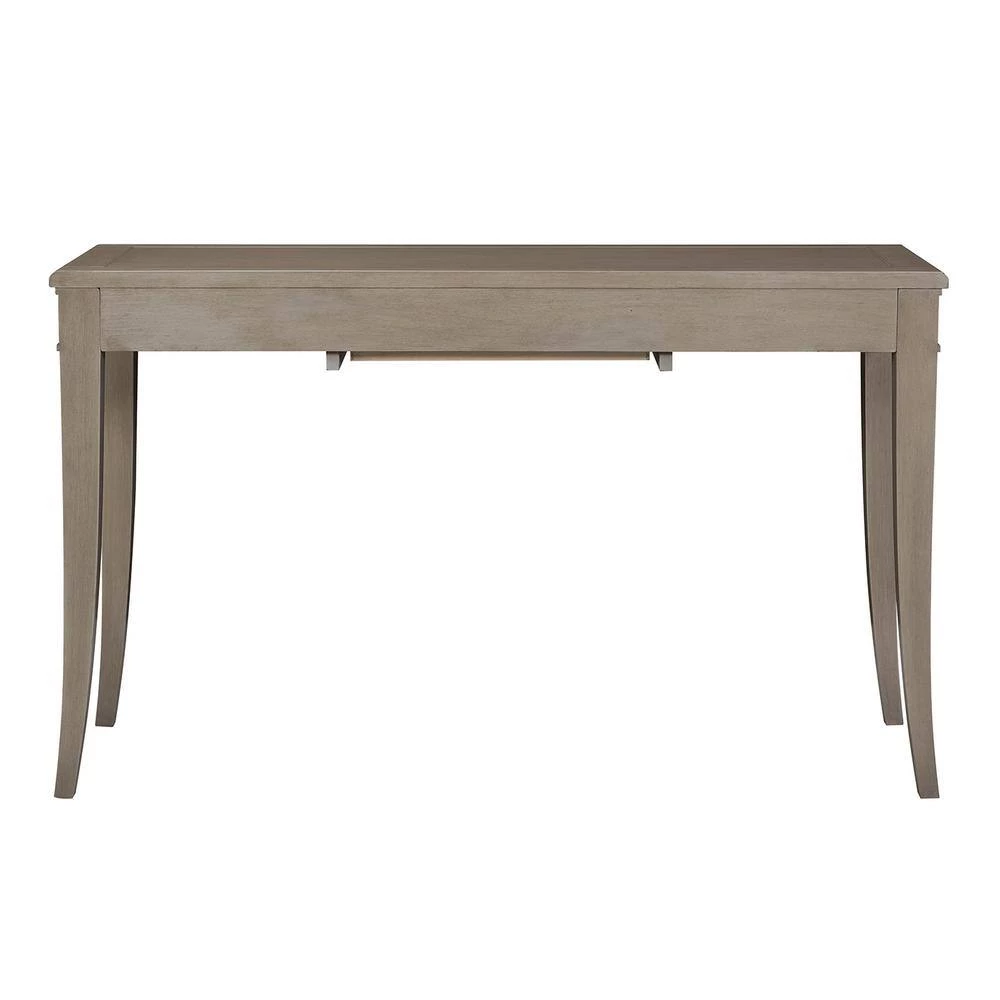 An elegant vanity solution, the Dauphin Console Table can be matched with a Dauphin Collection mirror and vanity stool to create the stage for your self-care routine. Or alone, this table is a beautiful accent piece for your entry or hallway. Crafted from solid birch wood and stained a classic gray, the beautiful wood grain peeks through and is complemented by the hand-painted accents in soft gold. Design details include a single drawer resting on metal slides. Due to the many variations in monitors and browsers, colors may appear different on different monitors. Since it is not possible to guarantee our online colors will look the same on all computers, we do not guarantee that what you see accurately portrays the color of the actual product. Due to the handmade nature of the product, the item received upon purchase may differ from the product displayed online.
