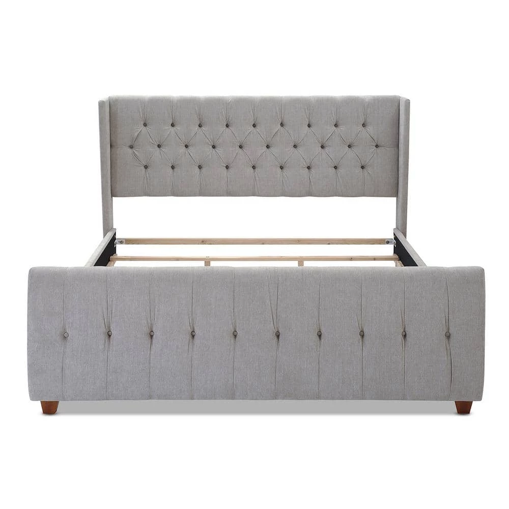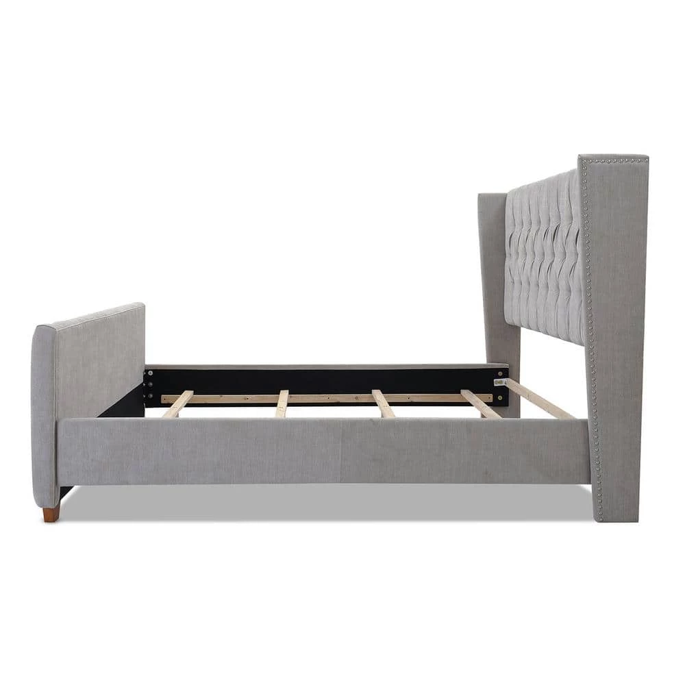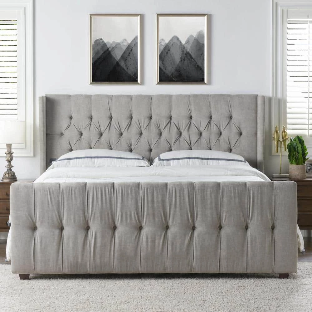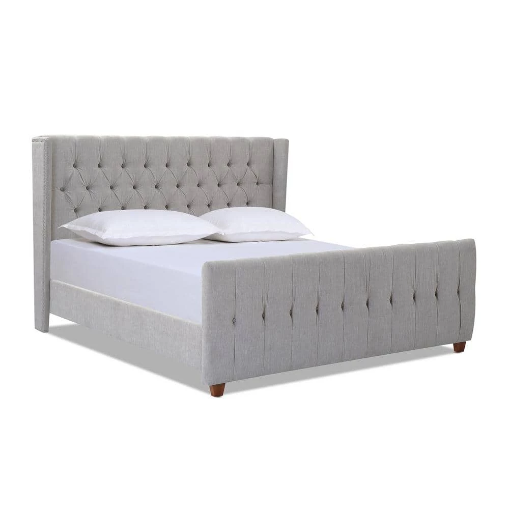 The David collection by Jennifer Taylor Home is the perfect addition to any bedroom looking to add a bit of a modern flair. The fabric selected for the collection features a polyester blend and engineered for long life. This wingback headboard bed is accented with a hand applied nail head trim along the wings’ silhouette and hand tufts throughout the headboard and footboard. Features:- Crafted from Birchwood, a deciduous hardwood that doesn’t molt or discolor over time, which makes it ideal for furniture making. – All exposed hardware has a Zinc finish- Woven Polyester wrapped premium flame retardant foam for a medium firm feel- Masterfully designed by experienced furniture craftsmen and women- Size Availability: King and Queen- Pattern: Solid- Main Fabric: Woven- Color: Antique White, Silver Grey, Dark Charcoal Grey, Sky Neutral, Dark Sapphire Blue, Jet Black- Weight capacity: 600 lbs.- Assembly required- Box spring required- Dry clean or spot clean only- Dimensions: 83 in. L x 88 in. W x 54 in. H- Leg Dimensions: 1.5 in. D x 3 in. W x 2.5 in. H- Weight: 104 lbs.