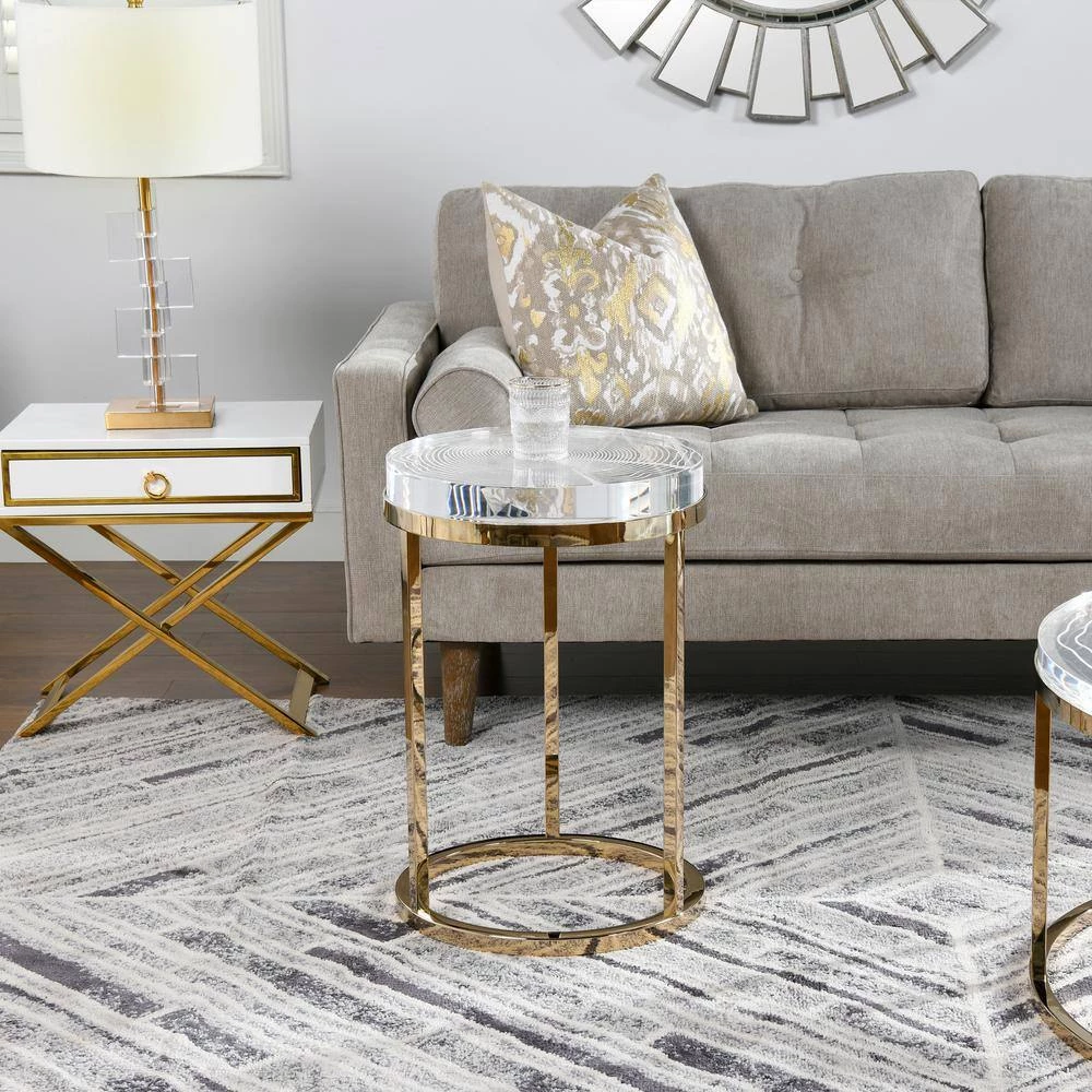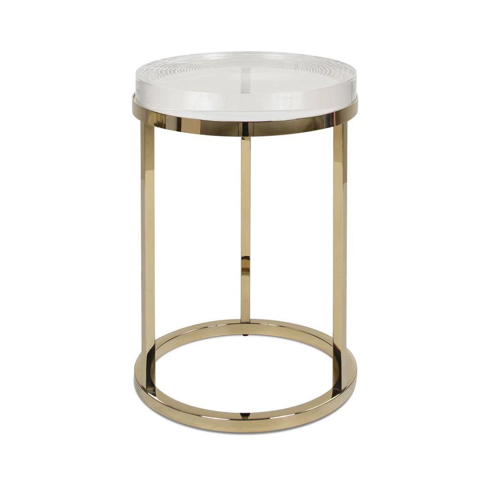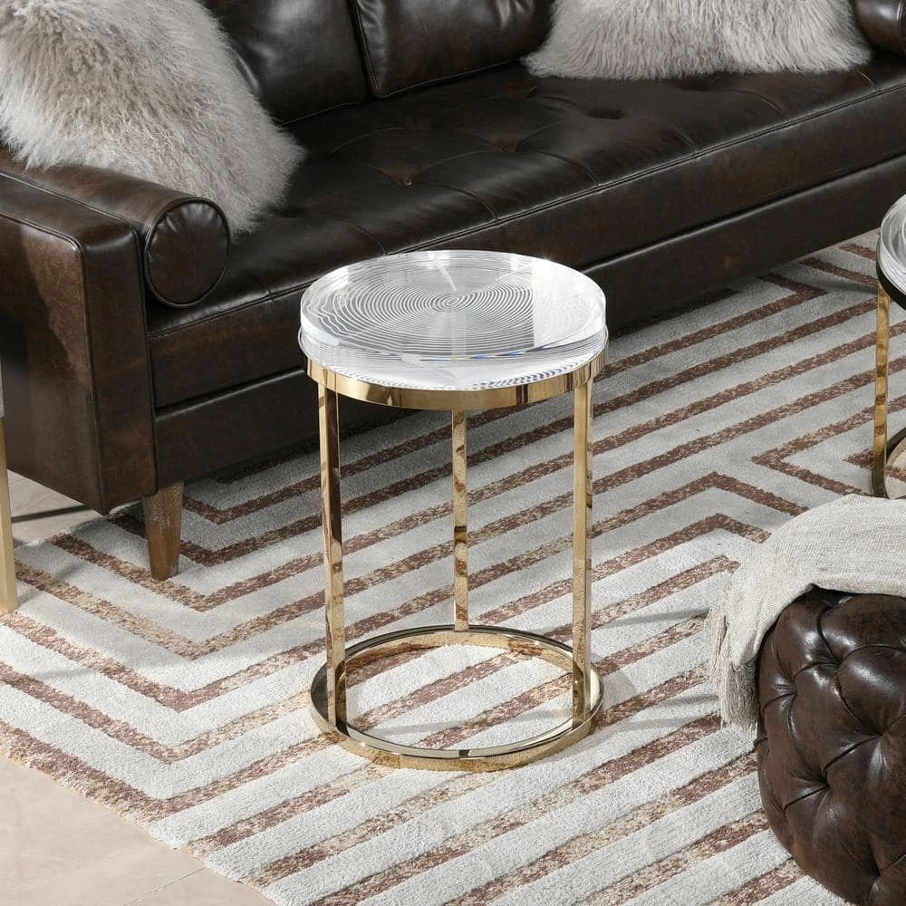 Inspired by nature’s design, the Dendros Accent Side Table by JTH LUXE is a luxe take on the natural shapes found in tree trucks. The thick acrylic table top is engraved in a tree ring pattern and the edges are carved to mimic the organic look of live edge wood. The gold stainless steel base support adds a touch of glamour. See the Dendros Collection for the matching round coffee table.