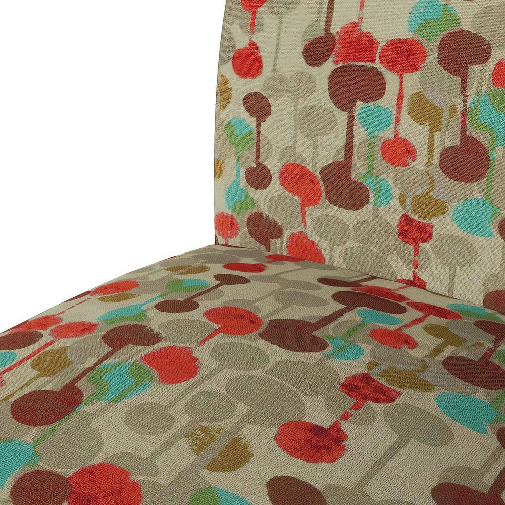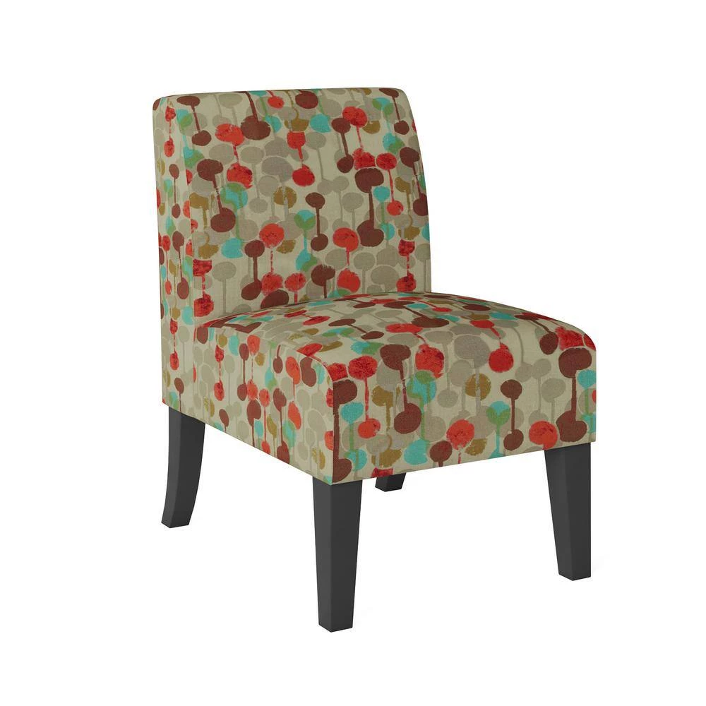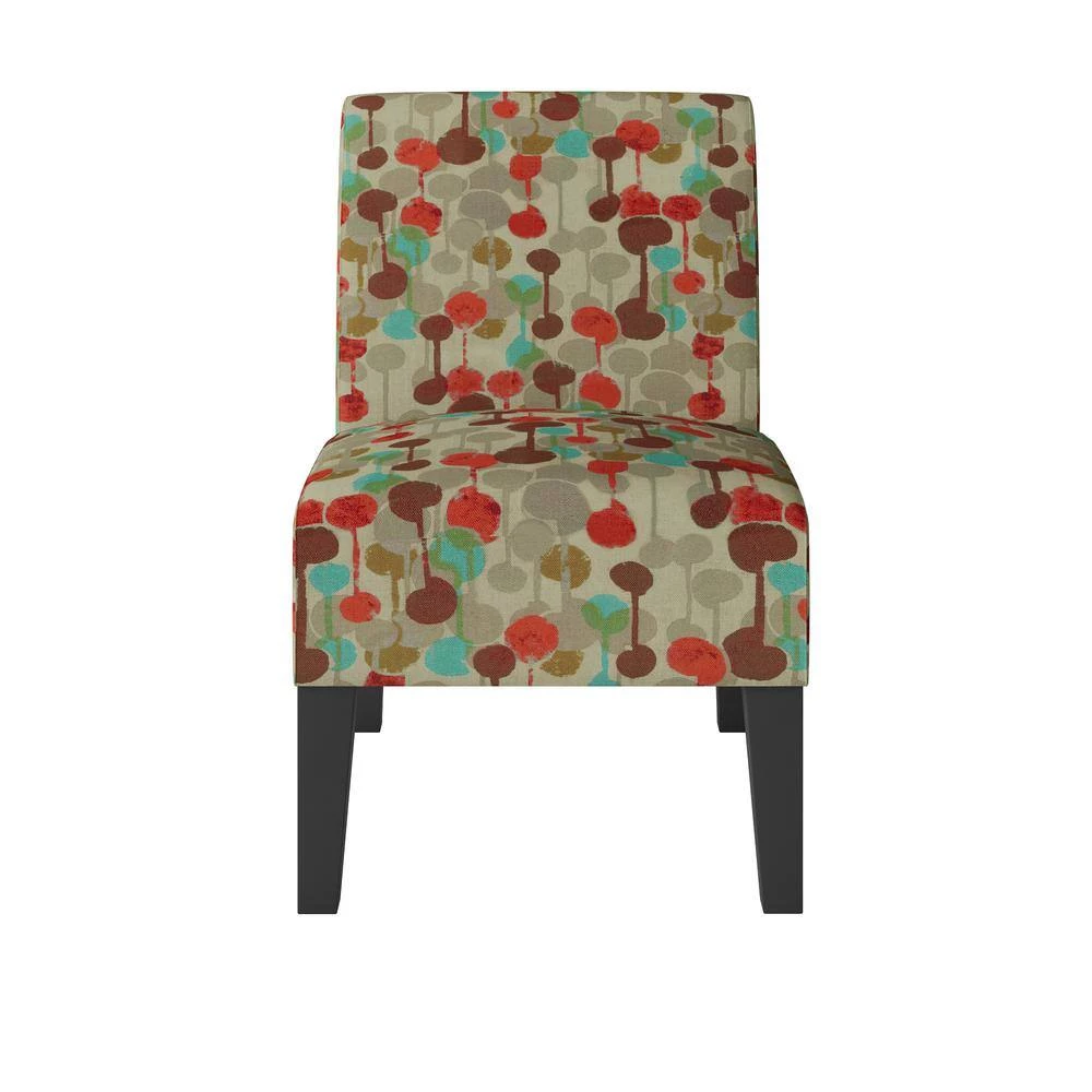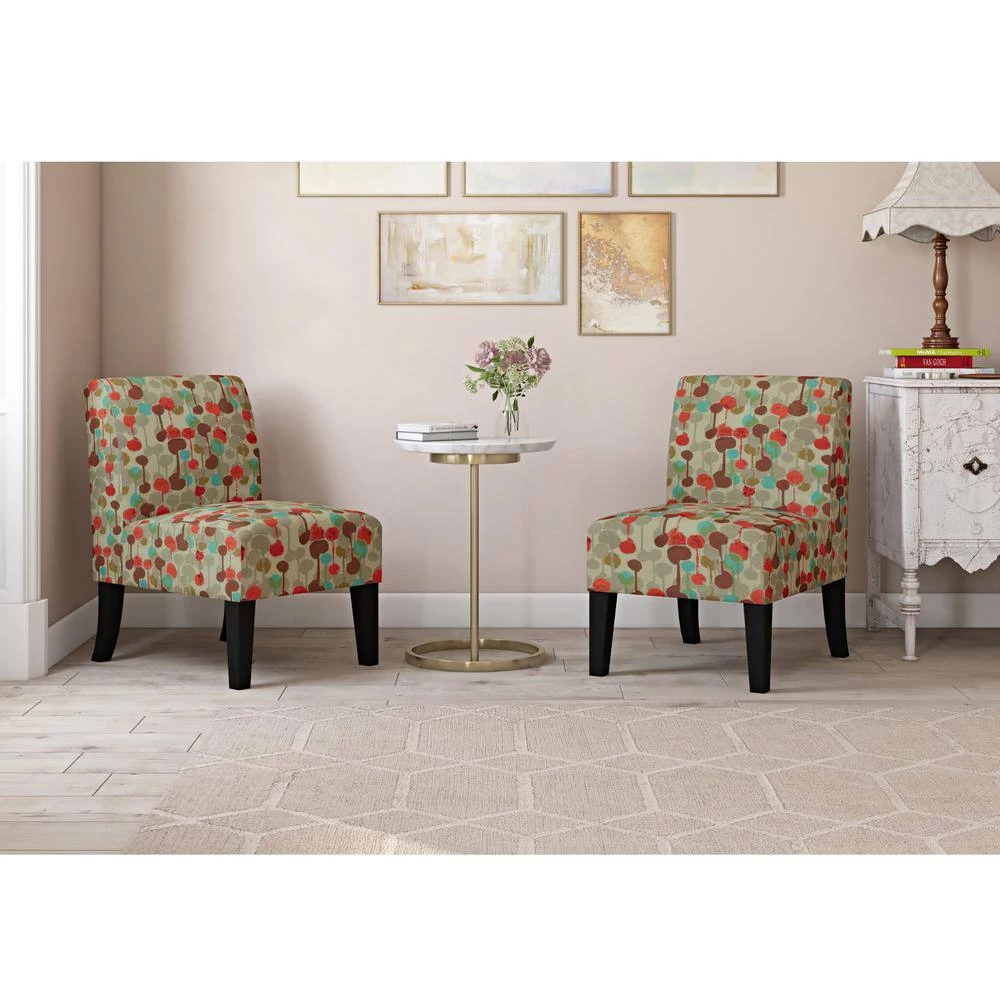 This (set of 2) armless accent chairs is designed to update the look of your home. These slipper styled chairs feature a slightly curved square back, sinuous springs, deep seat cushion and thick foam cushion for extraordinary comfort. Imported, color may vary.