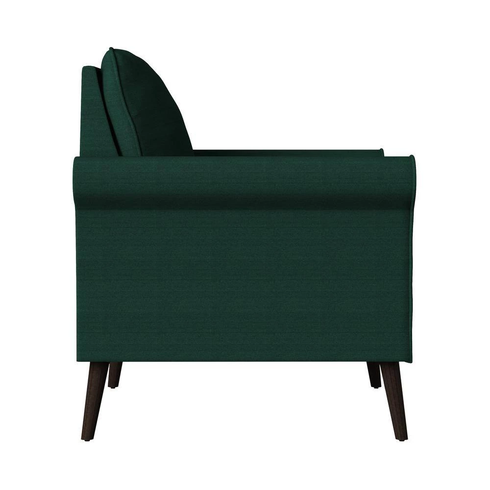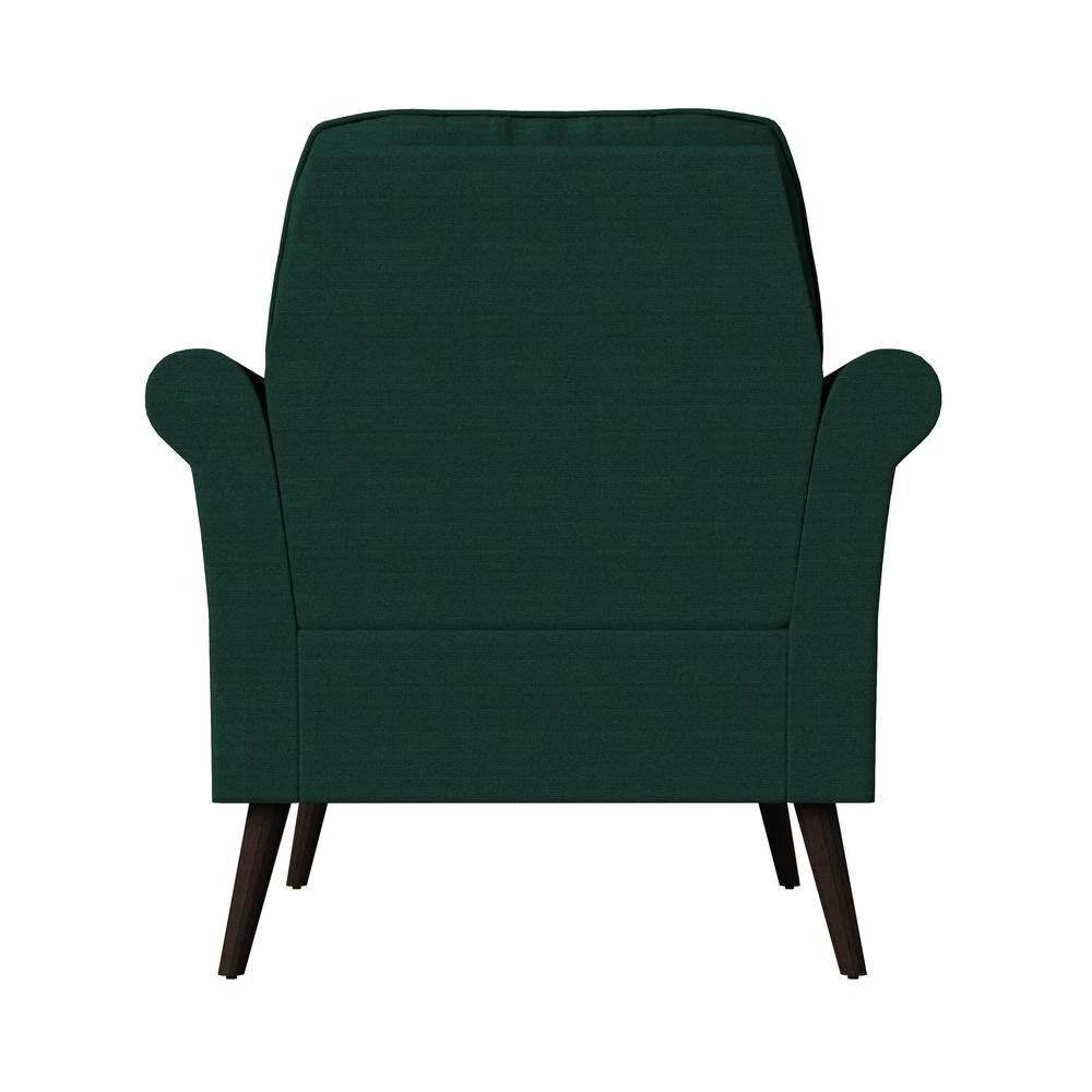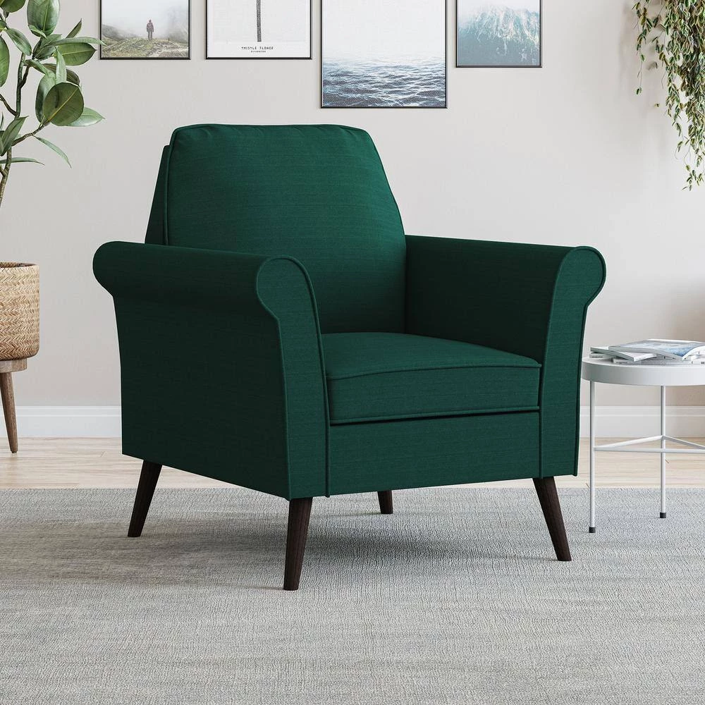 This armchair’s strong profile is softened by gently rounded flared arms and a tapered square back that give this piece a modern edge. Covered in a durable, easy clean 100% polyester fabric. The arms and seat cushion are detailed with welting for a tailored touch. Easily assembled with included tool and instructions. Imported, color may vary.