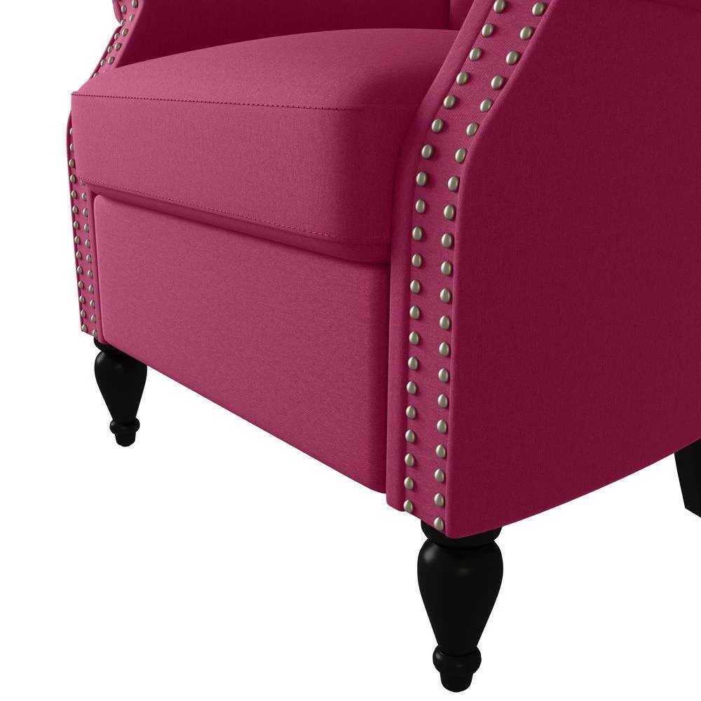 This updated traditional arm chair and ottoman set are not only comfortable but will provide a sophisticated elegance to your home. The chair features rolled arms adorned with hand tacked pewter nail head trim and a squared back with channel tufting that adds a dramatic touch. Perfect for a living room, bedroom or office. Covered in a durable, easy clean 100% polyester plush low-pile velour fabric. The chair features turned front legs and squared back legs and the ottoman features turned legs all in solid wood with an espresso finish. Easily assembled in about 30- minutes with included tool and instructions. Imported, color may vary.