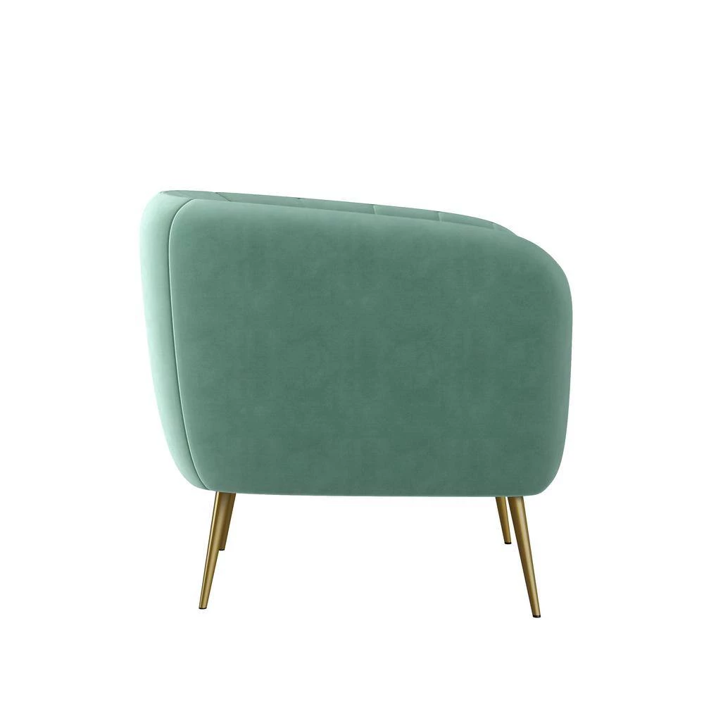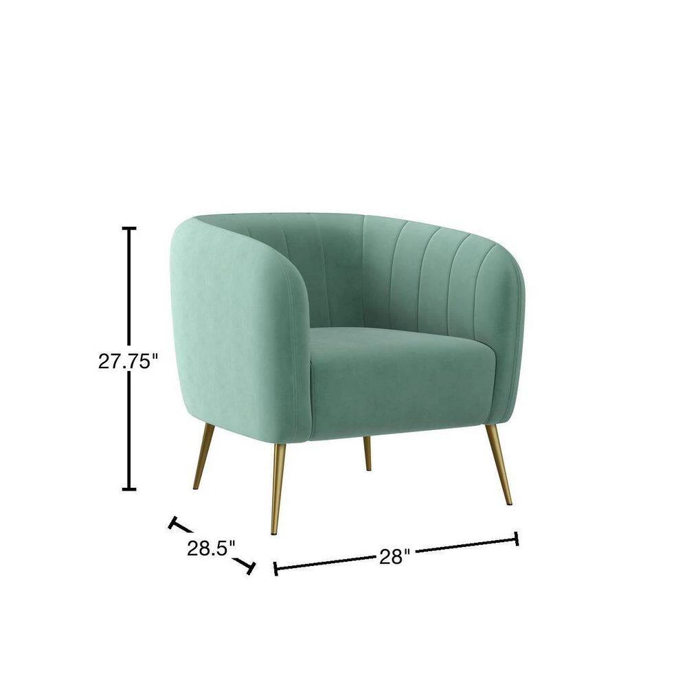Lean back and lounge in this sumptuously styled barrel chair. This sophisticated chair features a rounded, channel-tufted back and arms and a deep, welcoming seat. Covered in a durable, easy clean 100% polyester fabric. Seats up to 300 lbs. Easy assembly, simply attach the legs. Imported, color may vary.