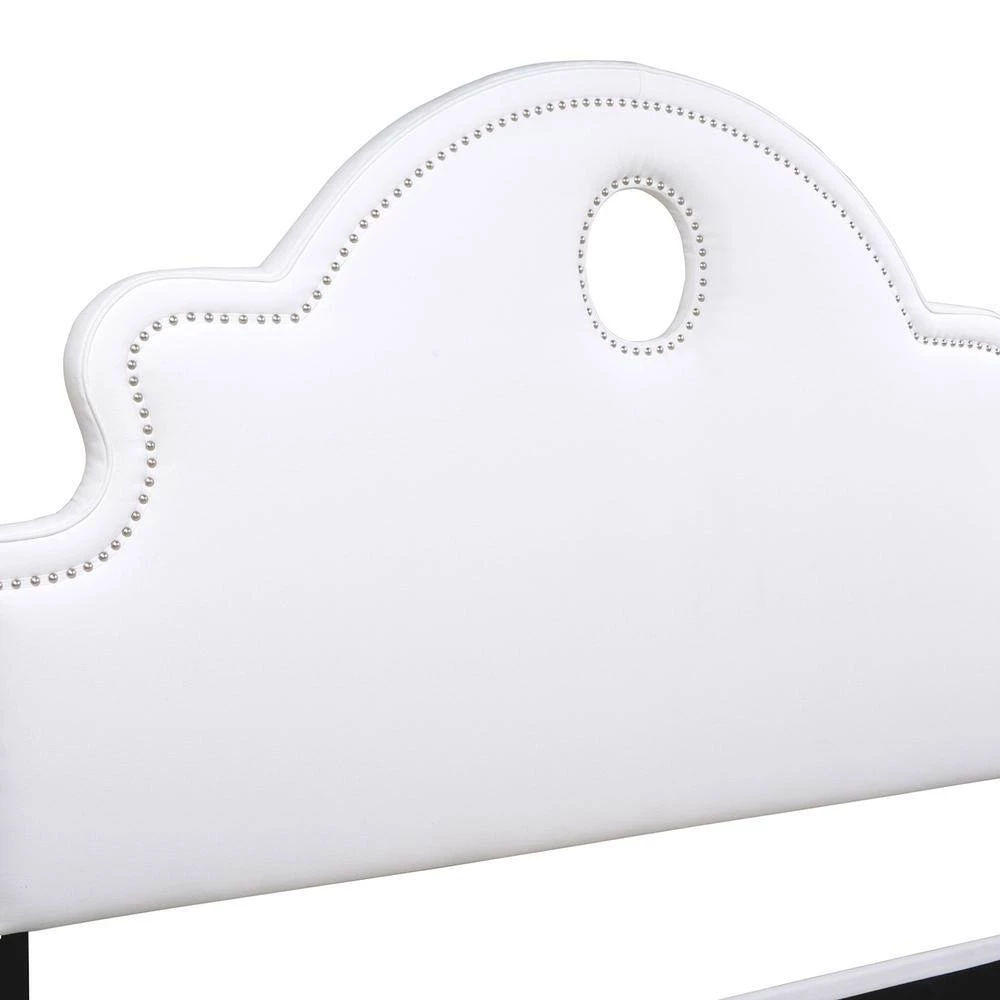 - Tall, adjustable-height headboard with keyhole design