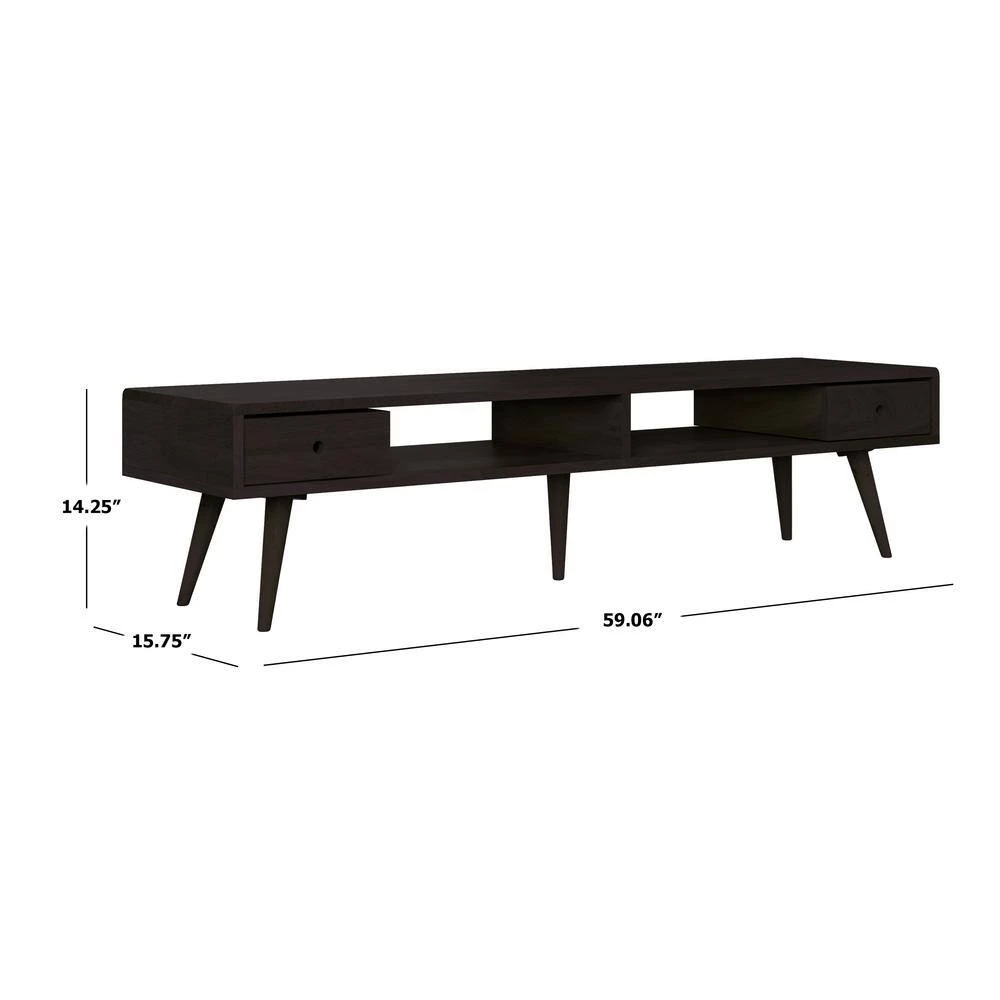 - Assembled TV stand dimensions: 59.06 in. W x 15.75 in. D x 14.25 in. H, 45.32 lbs.