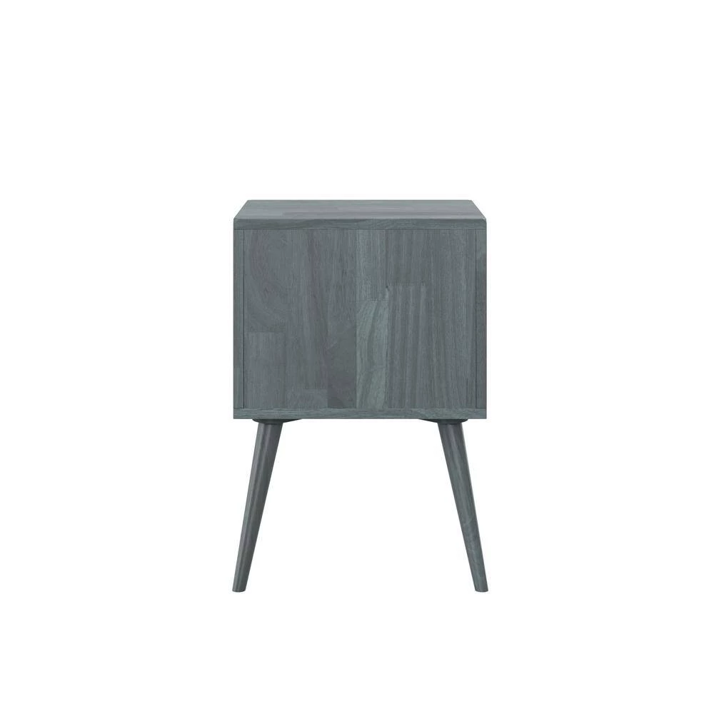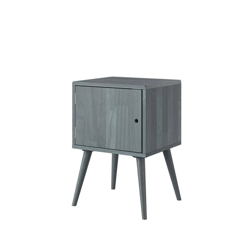 This mid-century modern cabinet style end table is sure to make a statement in your home. The square-shaped solid wood table is not only beautiful but a convenient storage solution. The simplicity of this cabinet makes it versatile enough to use as a side table or end table in a bedroom or living room. Interior of cabinet is roomy enough to store a variety of items. Imported, color may vary.