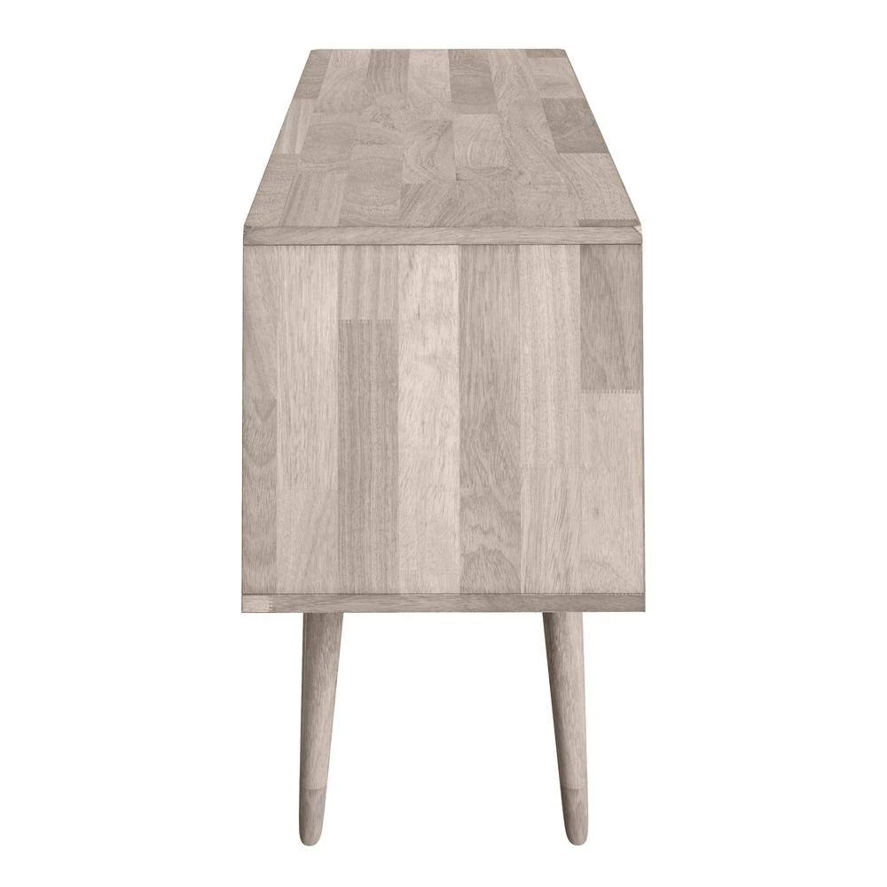 This mid-century modern entertainment cabinet is a multi-functional piece designed with style. The wood cabinet provides 2-open center shelves with 2-enclosed storage areas with doors and open backs for additional hidden storage. The round tapered legs flare out slightly to complete the look and provide support. Perfect for a record player, albums and a TV for the den, living room or basement. Easily assembled in less than 40 minutes with included tool and instructions, as well as Phillip’s screwdriver (not included). Ships in 1-carton. Imported, color may vary.