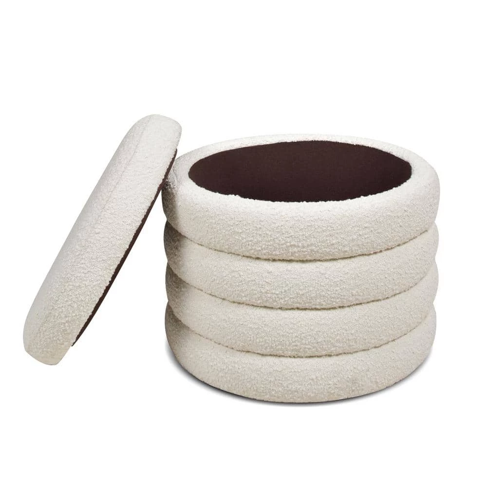 The Fuji Storage Ottoman Collection by Jennifer Taylor Home is a sweet addition of seating and organization.to your living room, bedroom. or entryway. The horizontal tufting gives this simple silhouette a unique, modern style while the trendy, plush boucle fabric adds an interesting layer of texture. The seat lifts away to reveal a storage area perfect for, organizing toys, throws, and other knick-knacks to keep out of the way.
