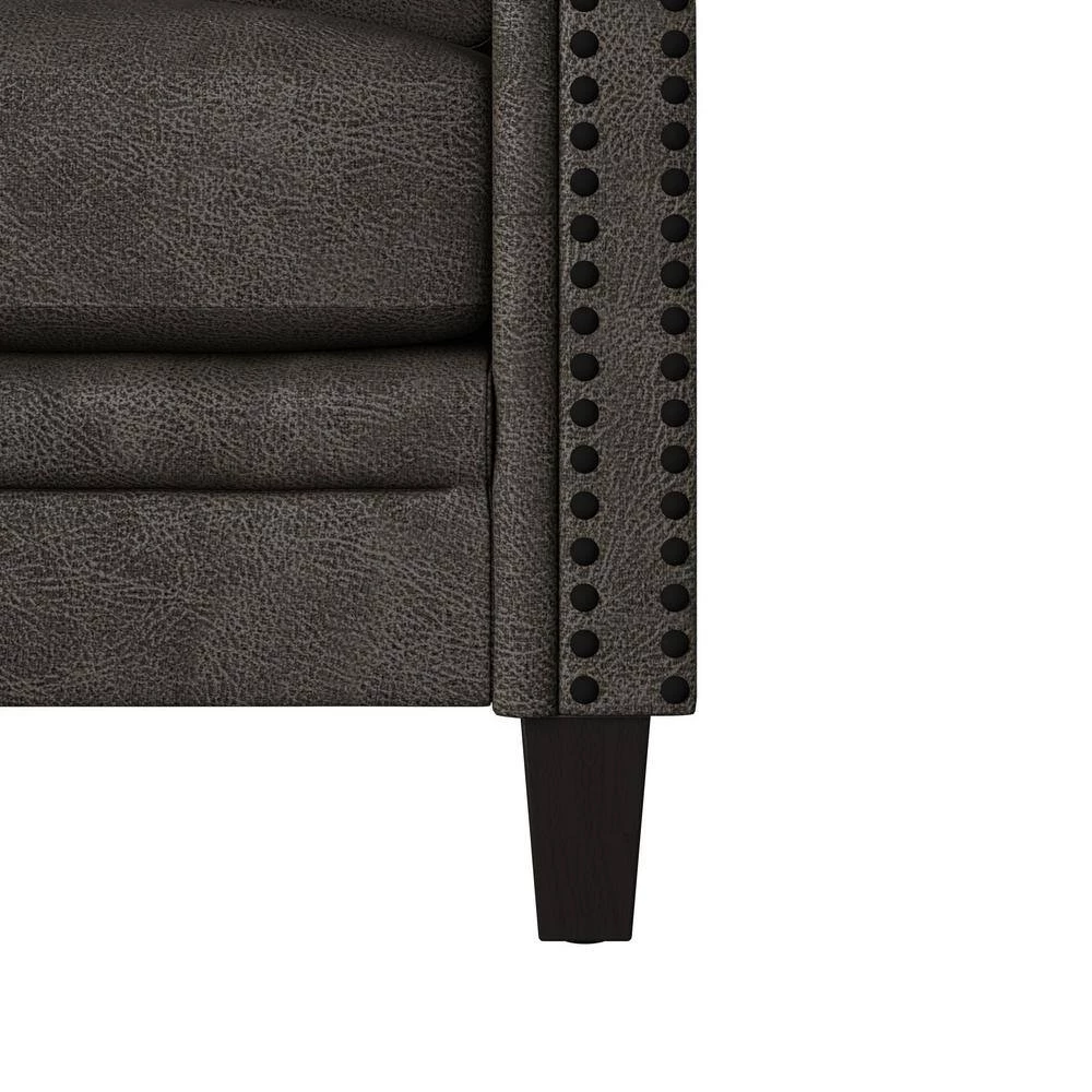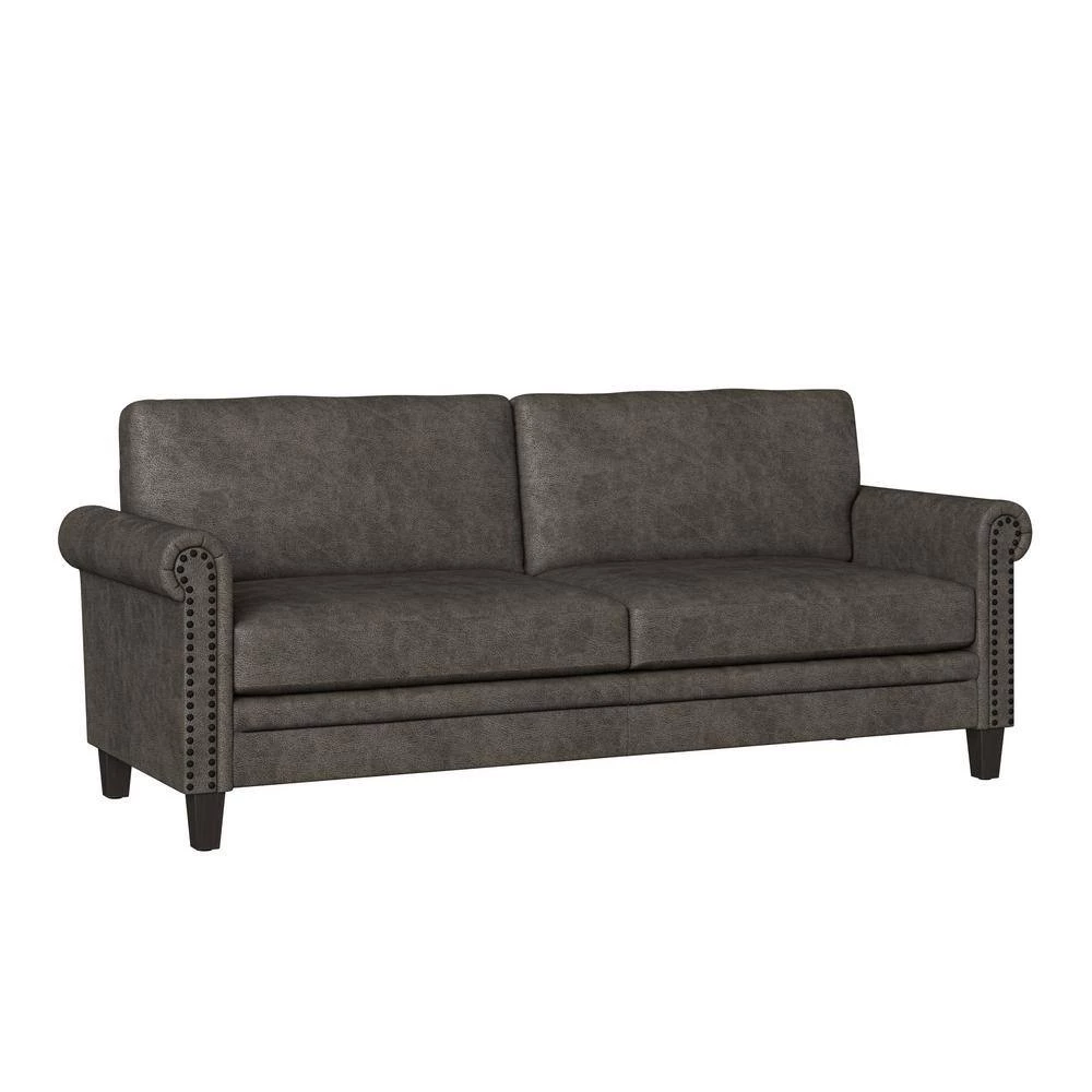 This sofa boasts a classic design that will elevate your home. The sofa features rolled arms that are accented with hand tacked bronze nailhead trim, square back cushions and attached box pillow seat cushion for a clean look with extraordinary comfort. HANDY LOCK easy connect, simply slide and click together in less than 15-minutes with included instructions. Seats up to 900 lbs. evenly distributed. Imported, color may vary.