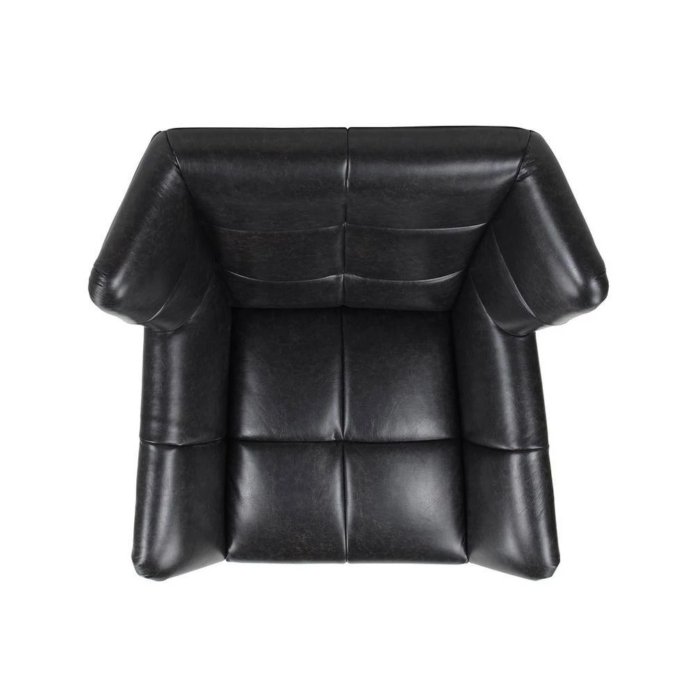 - Upholstered in faux leather atop a high density foam cushion for a medium firm feel