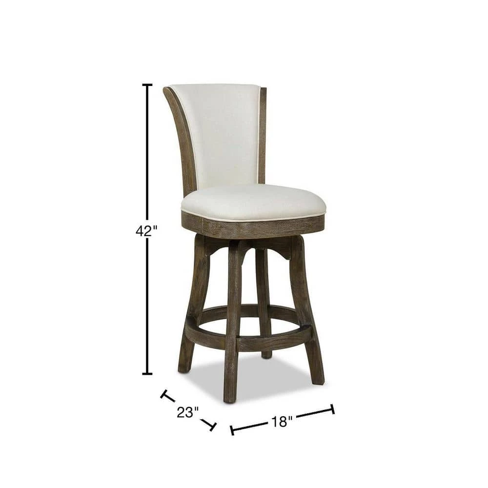 The Henry Swivel Counter Stool Collection by Jennifer Taylor Home puts a spin on that classic counter stool flair. Featuring a convenient 360° swivel seat complete with a plush upholstered backrest and convenient foot rest, these oak counter stools capture that natural farmhouse vintage chic with a textured wood frame in a rich stain. Available in a 27 in. counter seat height, the Henry lets you wine and dine in comfort whether it’s at your in-home pub table or kitchen. counter. A brass kickplate is included on the ringed footrest to preserve and protect the style of your stool.