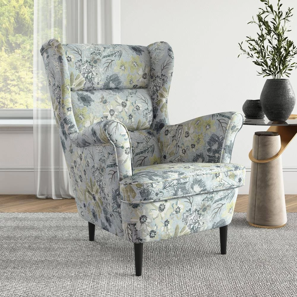 Offering a dramatic update on the traditional wingback chair, this version has an intriguing tapered silhouette, a bustle back and gently rounded arms. Covered in a durable, easy clean fabric made from 100% polyester, the chair is accented with welting around the arms and removable seat cushion. Assembly required with included tool and instructions. Imported, color may vary.
