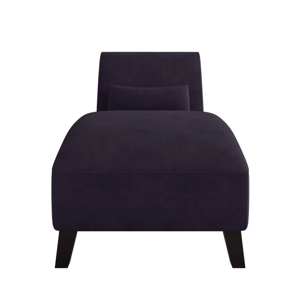 This chaise features a contemporary sleek design with clean lines, a curved seat and arched back. Enhance your home decor with this unique chaise lounge chair. Covered in a 100% polyester soft deep plum velvet-like fabric. Unique piece of furniture has inviting curves. Chaise assembles easily to instantly create the perfect relaxation area in the living room or bedroom. Ships in 1-box. Takes less than 30 minutes to assemble with included instructions. Imported, color may vary.