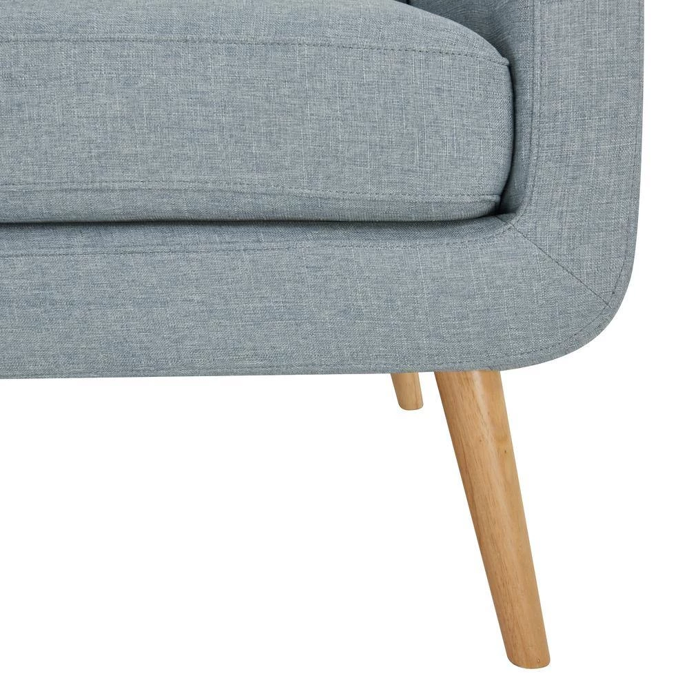 Sofa boasts a mid century modern design that will elevate your home. The sofa features a square back with lace tufted design, sinuous springs and a thick foam cushion for extraordinary comfort. Covered in a woven textured 100% polyester fabric. HANDY LOCK easy connect, simply slide and click together in less than 15 minutes with included instructions. Ships in one (1) box. Imported, color may vary.