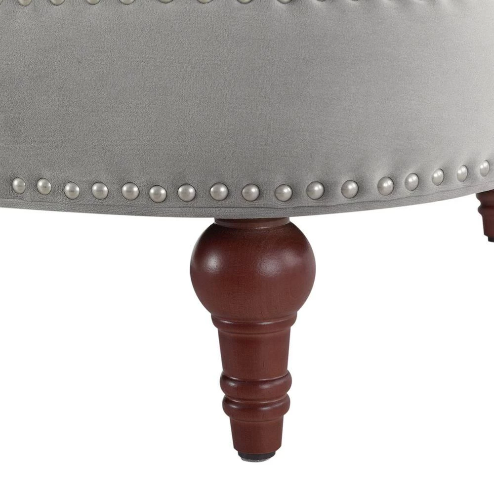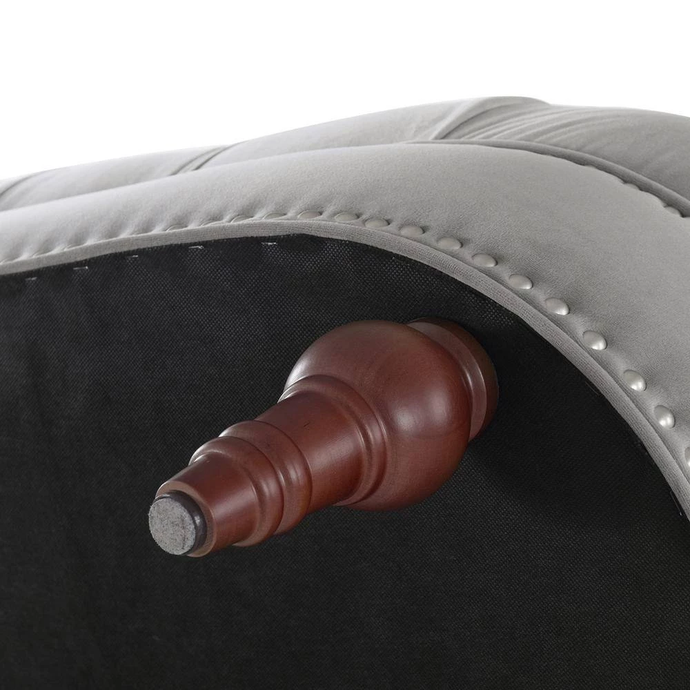 - Hand applied brushed silver nailhead accents