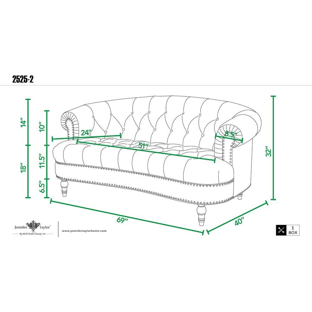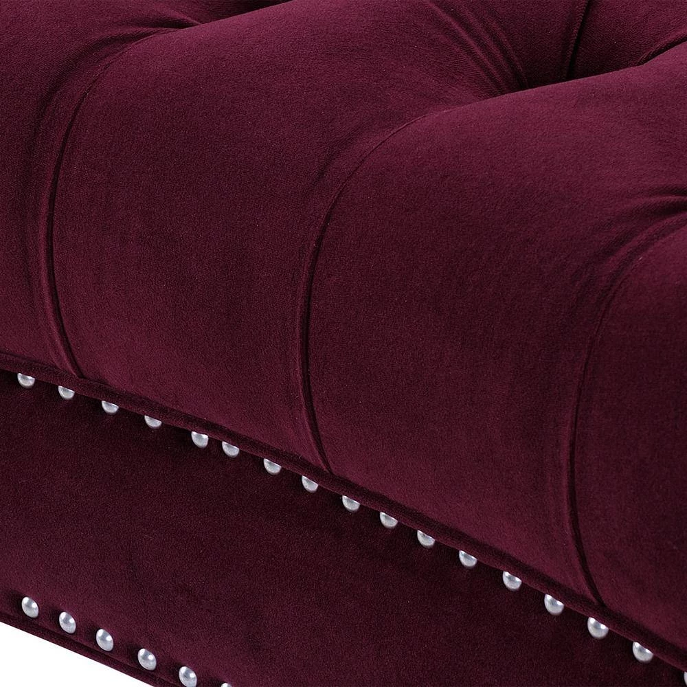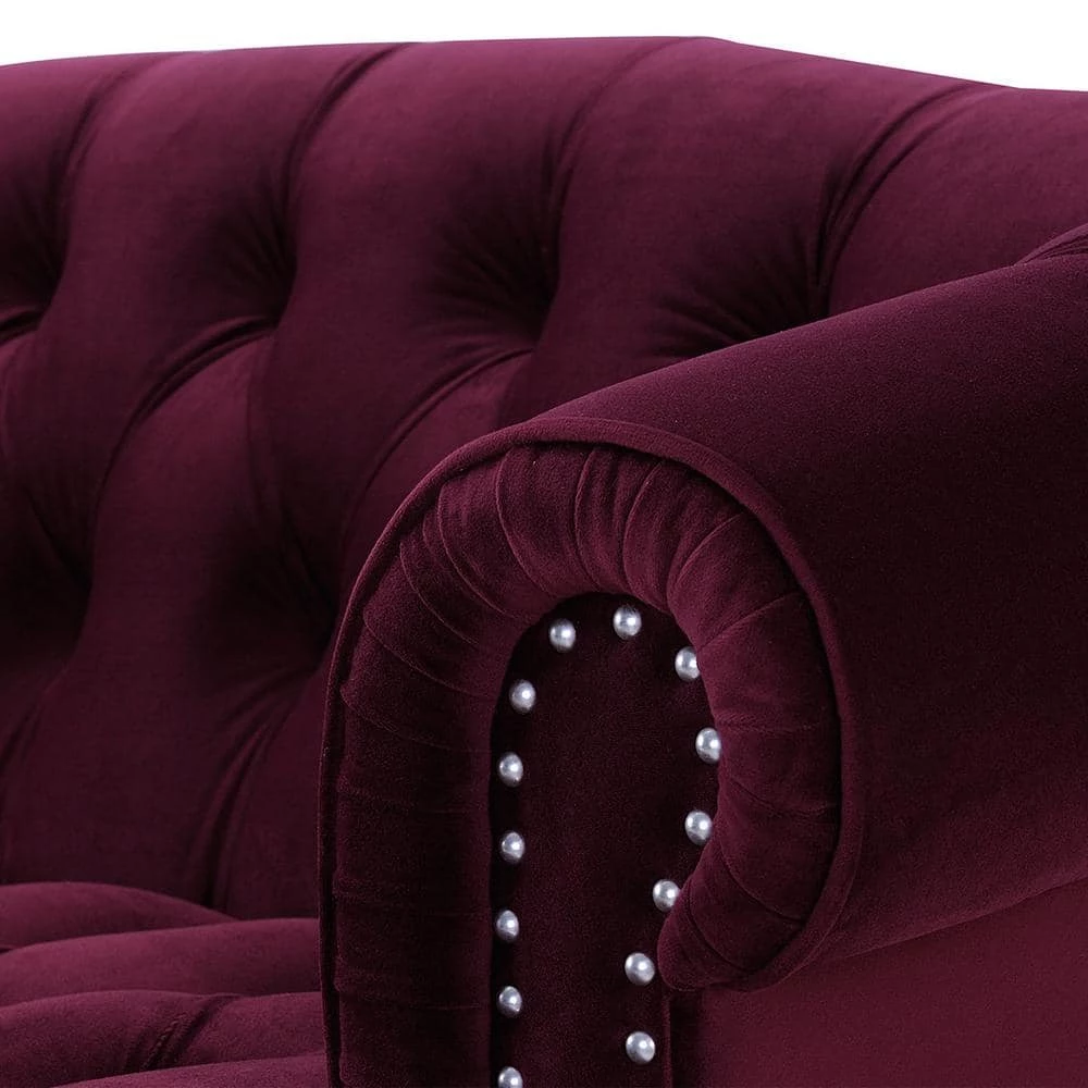 Nothing is as luxurious and opulent as the La Rosa Seating Collection by Jennifer Taylor Home. The collection includes a 3-seater sofa, 2-seater loveseat, and accent chair all inspired by the classic Chesterfield sofa silhouette. Featuring deep button tufting, large rolled arms, and nail head accents that combine to create an elegant Modern Victorian style. A solid wood frame and high-quality premium upholstery allow you to be able to display this piece in your home for years to come. Turn your living room into a showroom fit for entertaining A-list celebrities and VIPs alike.