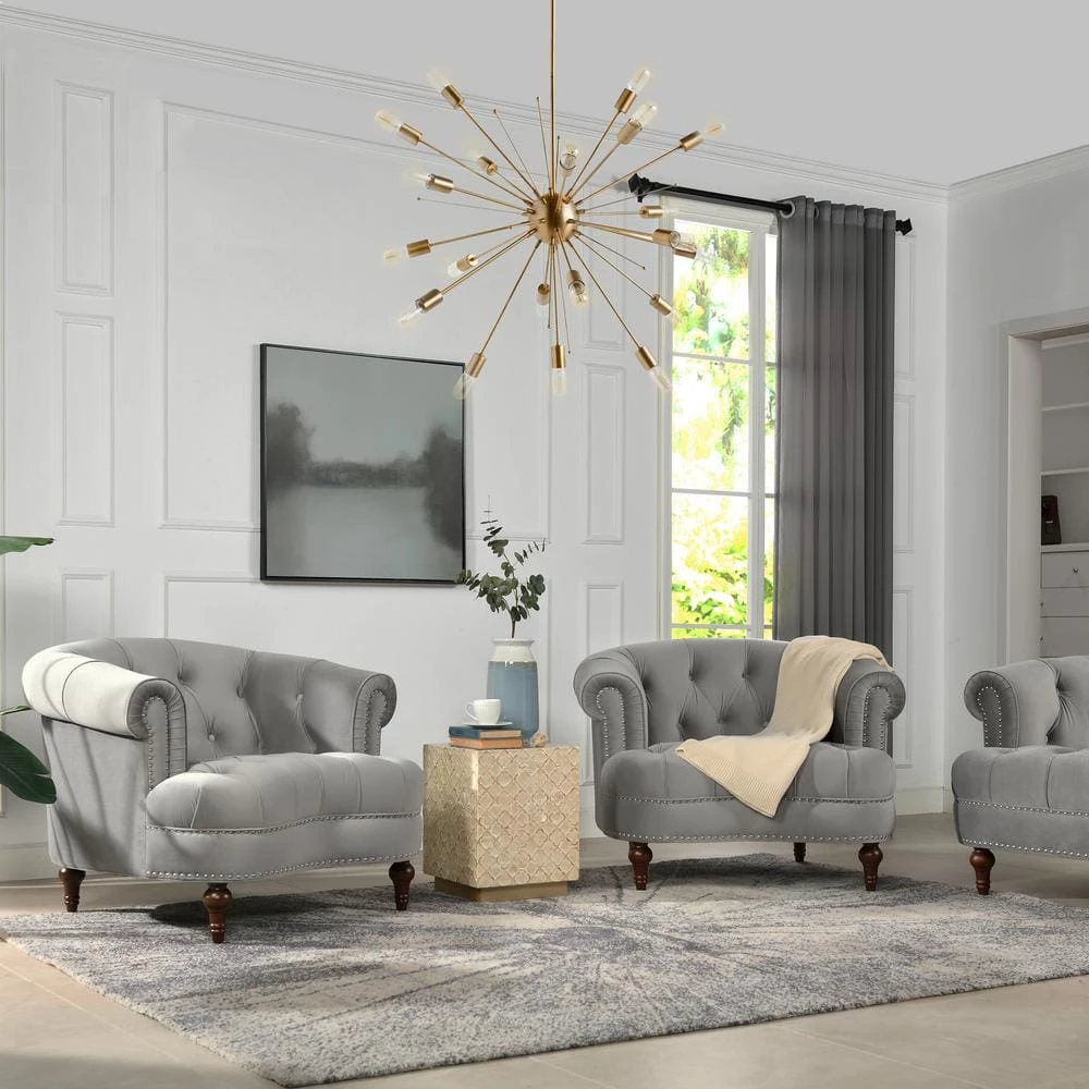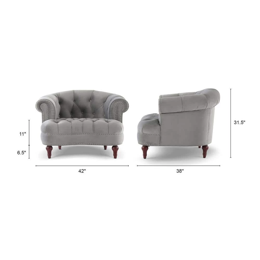 The La Rosa Collection by Jennifer Taylor Home is the perfect addition to any living space looking to add a bit of a modern contemporary flair. Upholstered with high-quality fabric, the solid wood frame is made from kiln-dried birch which provides exceptional support and stability. The ample tufting of the seat and back rest along with the nailhead accent trim gives the La Rosa Collection its distinct look and exuberant charm. Use it alone to make a statement piece, or in combination with the matching sofa, loveseat, and ottoman. Jennifer Taylor Home offers a unique versatility in design and makes use of a variety of trend inspired color palettes and textures.