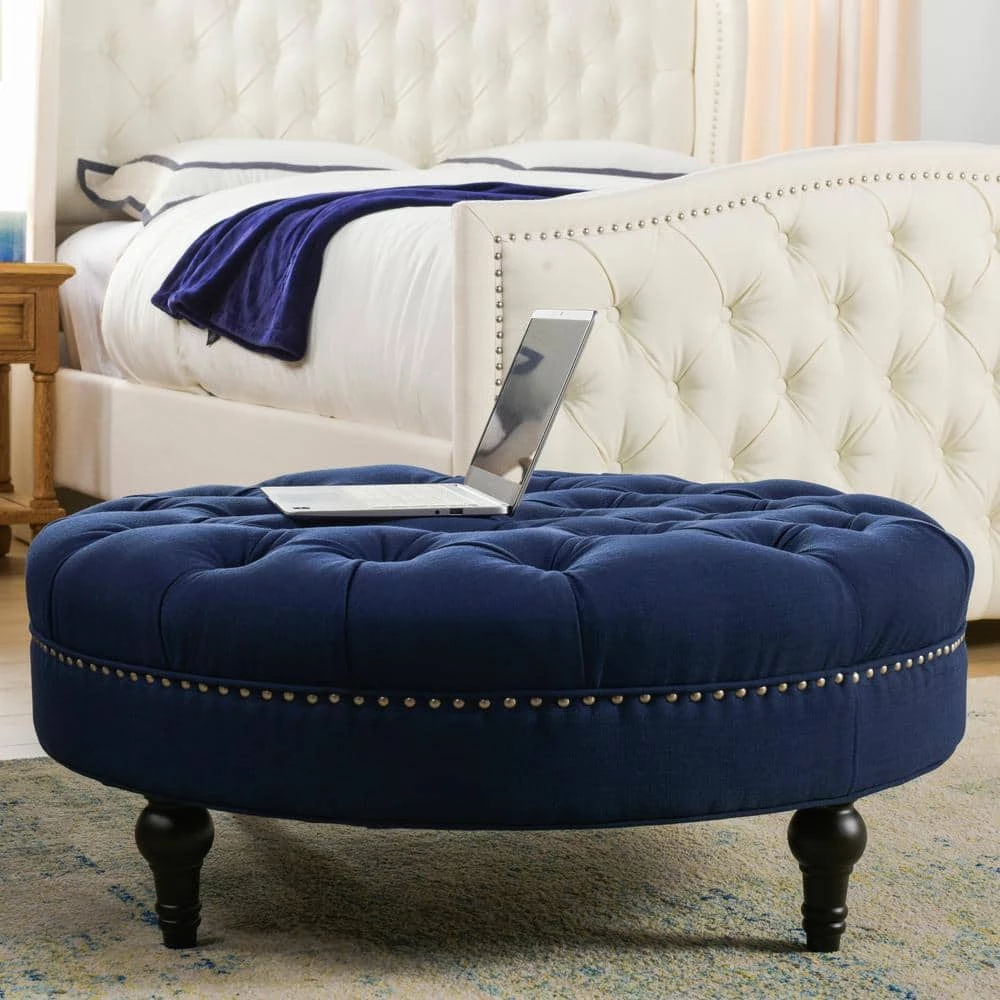 The Lana Collection is the perfect addition to any living space looking to add a bit of a modern flair. High quality fabric wraps a solid wood frame made from kiln dried birch and 11-layer plywood, which provides exceptional support and stability. Crafted beautifully with hand tufting on top and a single row of nailhead accents around the circumference, this elegant ottoman brings class and lounging comfort to any room in the home. Whether its used as additional seating, a coffee table, or as an ottoman, it is sure to please. Due to the many variations in monitors and browsers, colors may appear different on different monitors. Since it is not possible to guarantee our online colors will look the same on all computers, we do not guarantee that what you see accurately portrays the color of the actual product. If it is important that the sample be exact, we highly recommended that you order a swatch sample first, before placing the order.