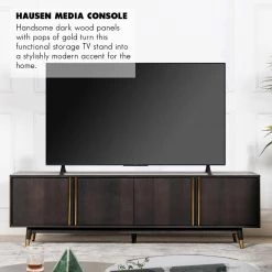 Hausen Brown Oak Wood and Veneer Mid Century Modern Storage Media Console by Jennifer Taylor
