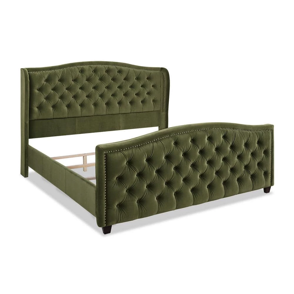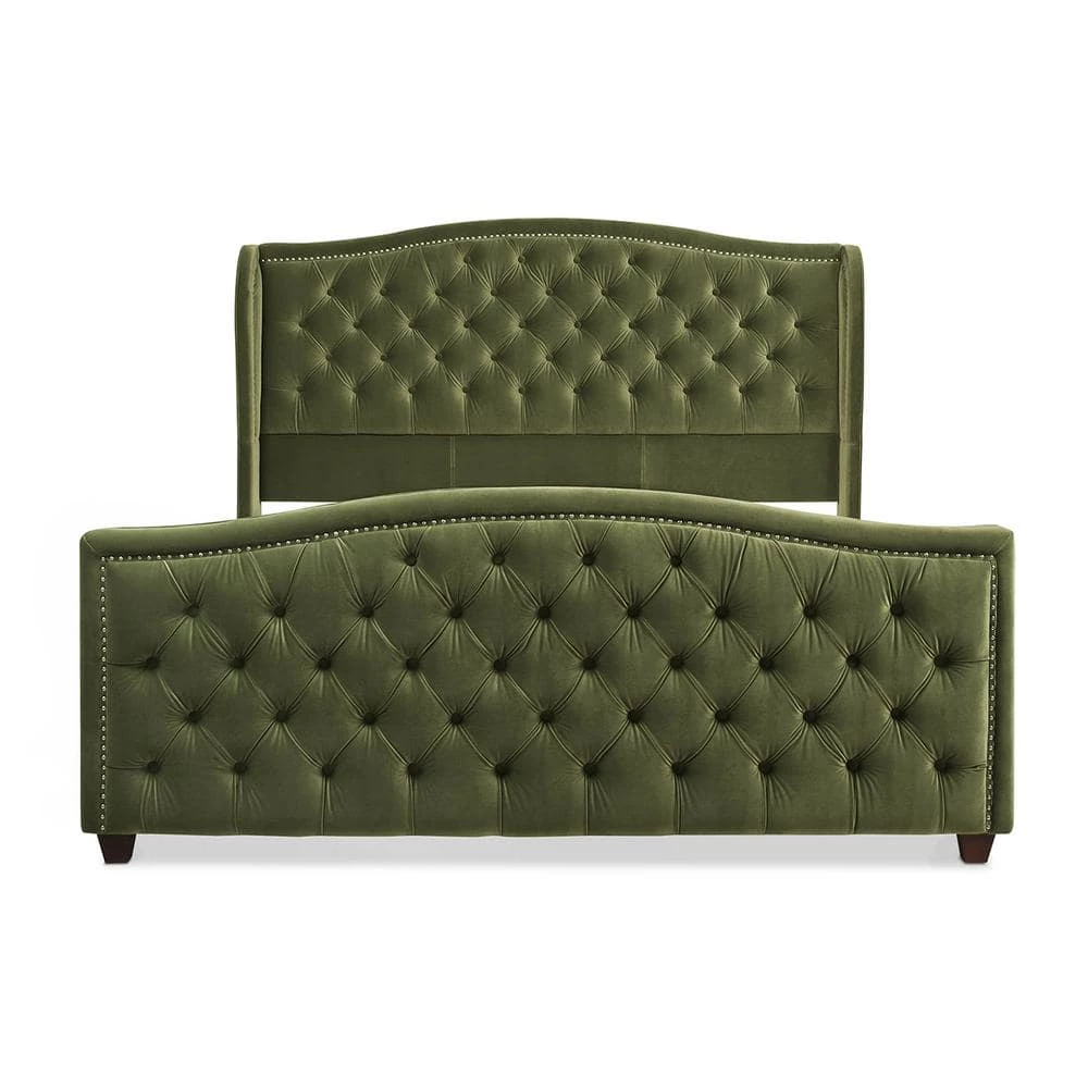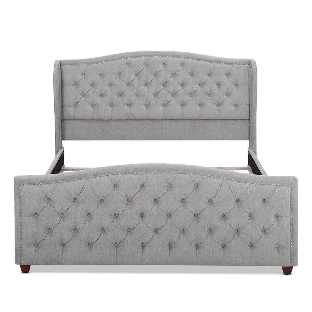 Beautify any bedroom with the Marcella Collection by Jennifer Taylor Home. The Marcella headboard and footboard bed set is the perfect combination of classic, farmhouse style with a bit of glam. The all-over upholstery lends plush and cozy vibes, while the button tuft.ed detailing and hand-applied nail heads give the Marcella artisan details for a bold statement to your master suite or guest bedroom. The wingback style headboard is an added detail that makes this bed stand out from the rest. Available in a variety of colorways and fabrics, look no further than the Marcella Collection for the bed of your dreams that you’ll love coming home to.