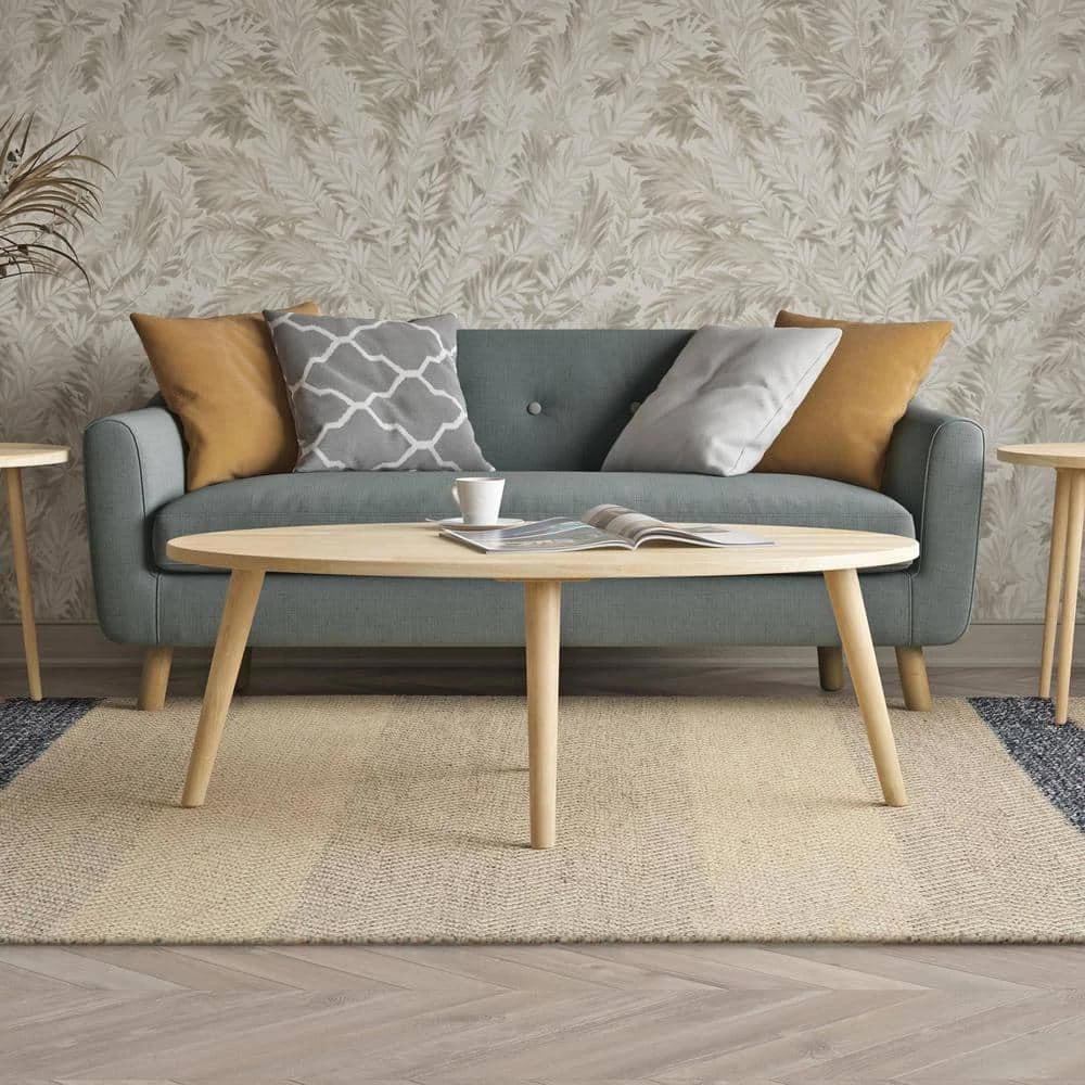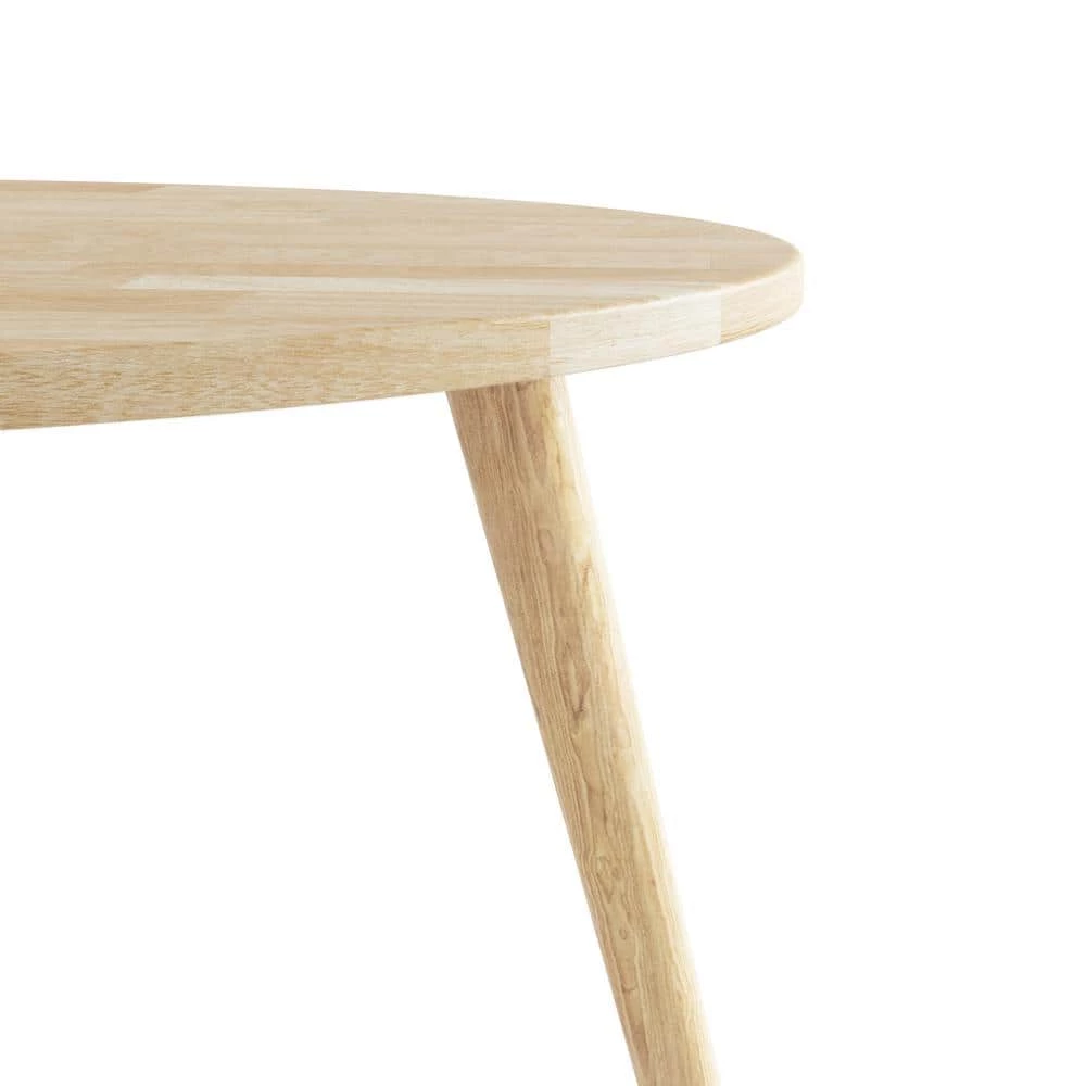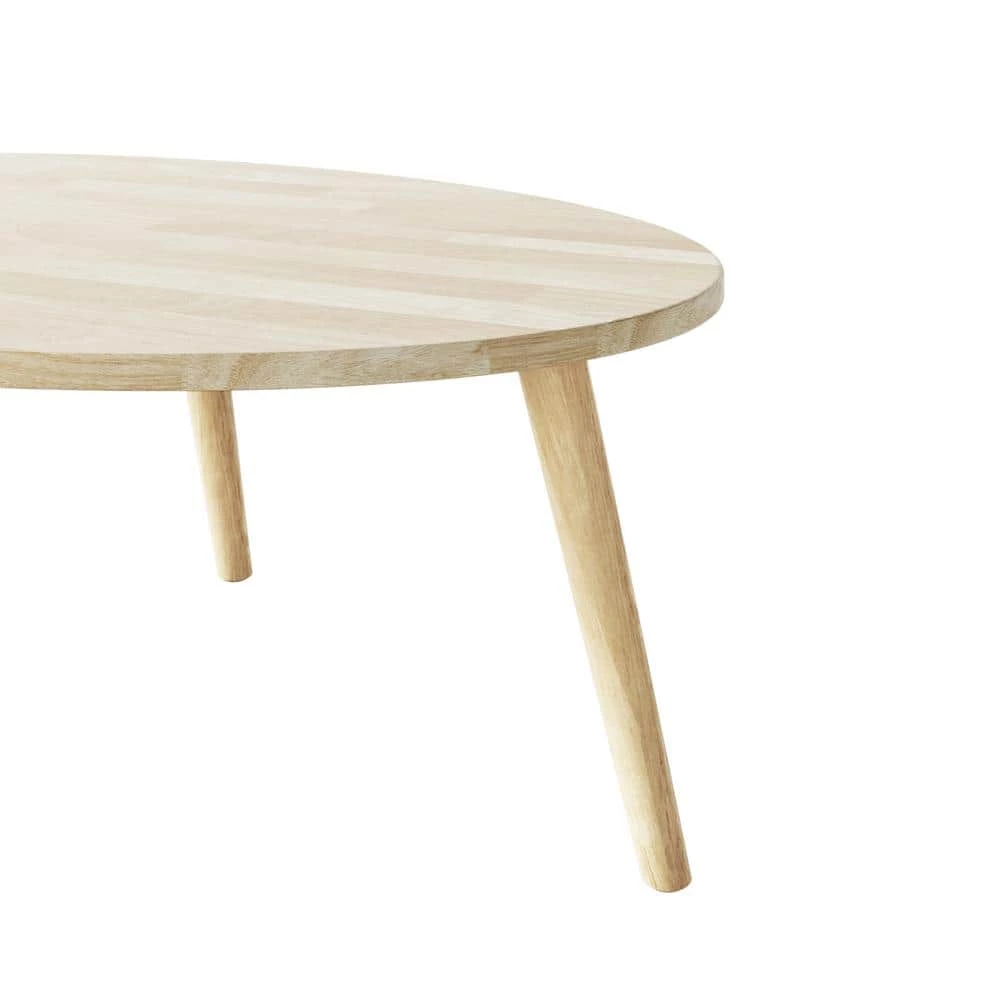 This cocktail table sports a modern design and will be a great addition to your home. The solid rubberwood table features an oval top and is complemented by round legs that flare out slightly. Imported, color may vary.