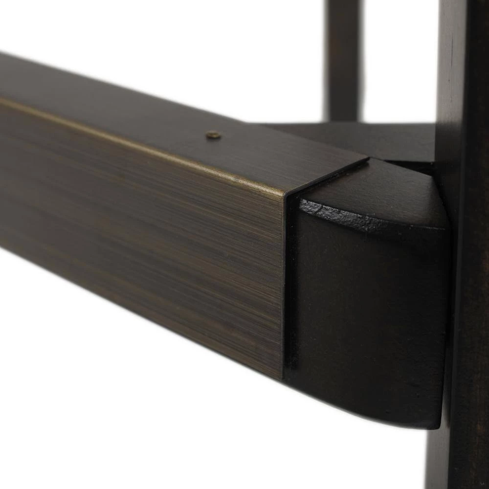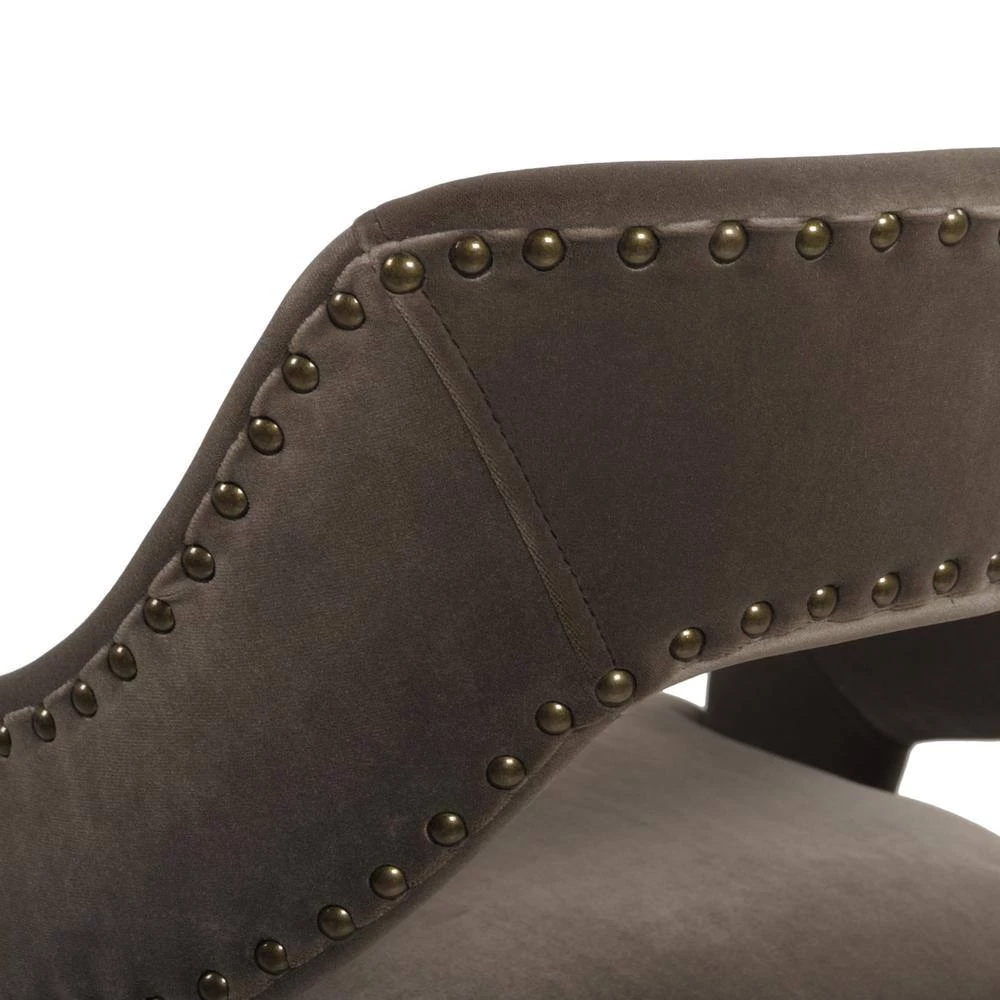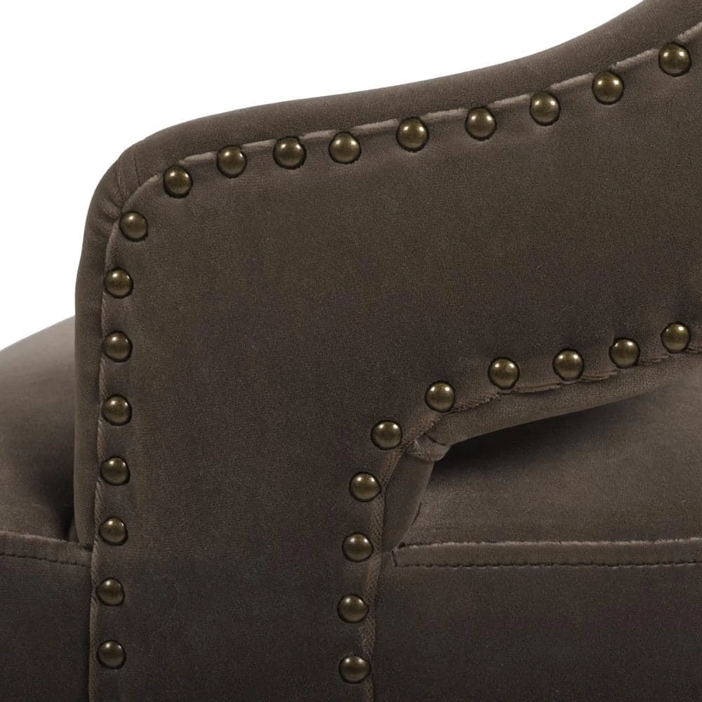 - Hand-applied iron nailhead accents are finished in antique brass to provide classic chic