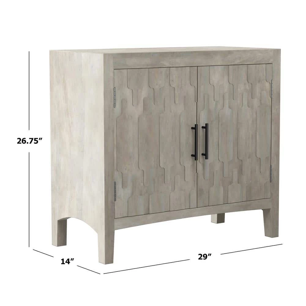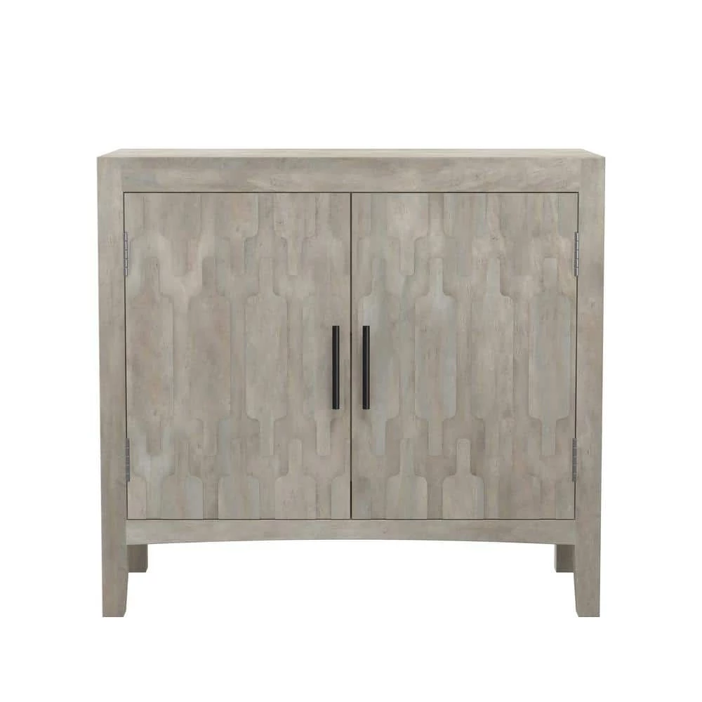 Beautifully hand crafted of mango wood with decorative carved door fronts, our sideboard has an eclectic sensibility that mixes and matches with a variety of furniture styles. Fitted with wrought-iron handles, the doors open to reveal a roomy interior with a shelf for keeping everything from office essentials to table linens neatly tucked out of sight. Imported, color may vary.