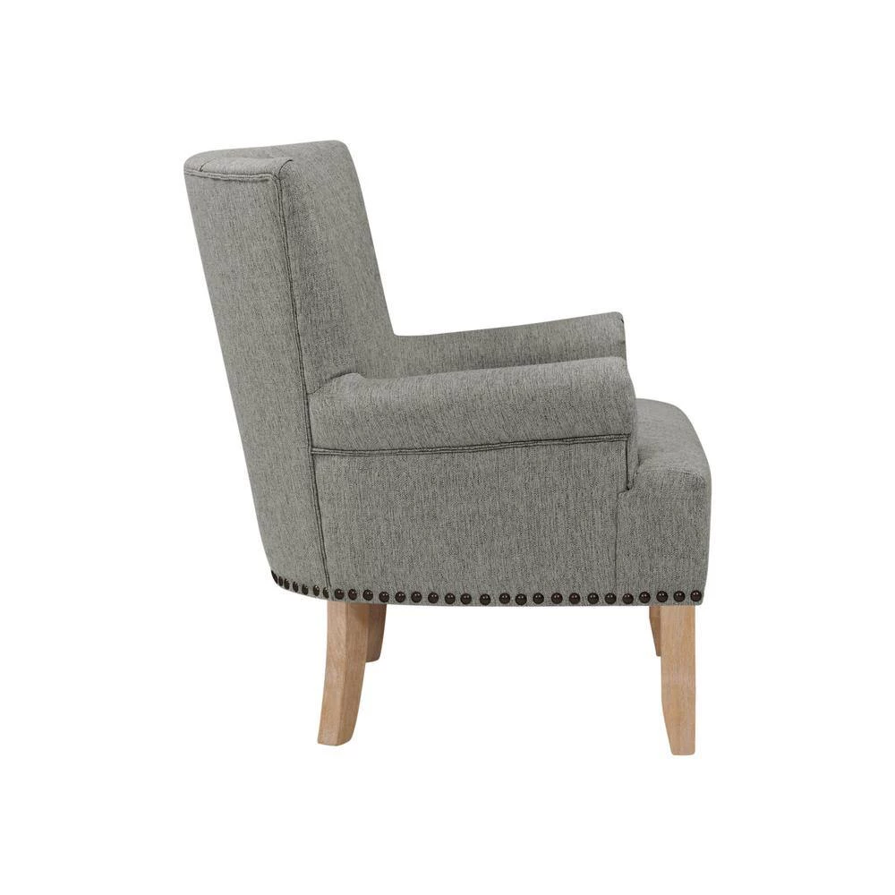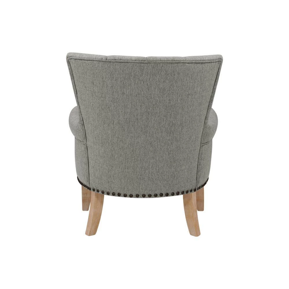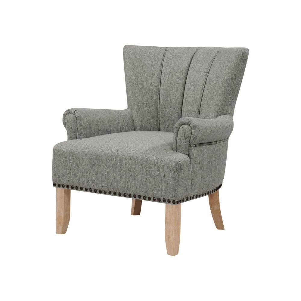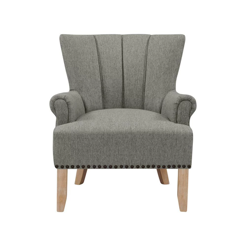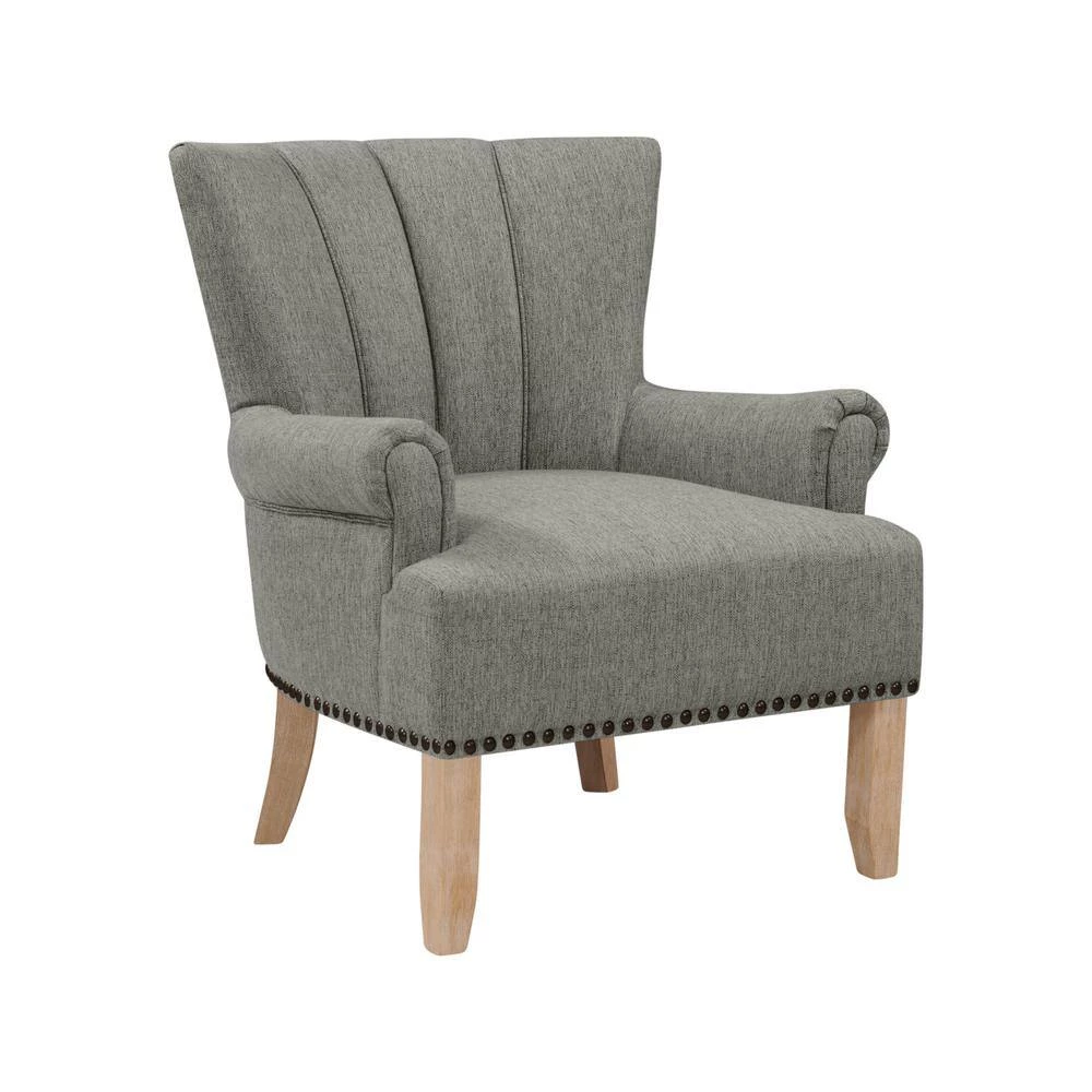 This sophisticated set of 2 updated traditional arm chairs features a channel tufted squared back with rolled arms and is accented with hand tacked bronze nail head trim along the bottom of the chairs. Perfect for a living room, bedroom or office, these chairs are not only comfortable but will elevate the look of your home. Covered in a 100% Polyester linen-like Performance fabric. With our exclusive “Never Fear” fabric finish, you can rest assured your fabric will stand up to your family’s dirt and wear and tear. “Never Fear” resists stains and has the quality to pass commercial durability standards. Ships in one (1) box. Imported, color may vary.