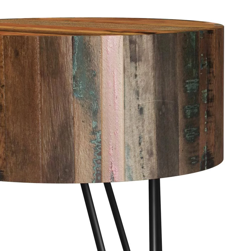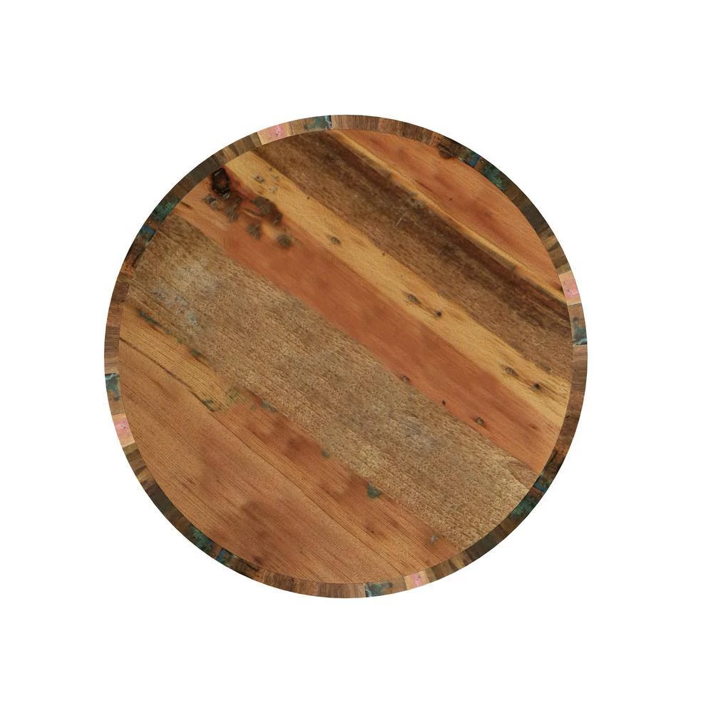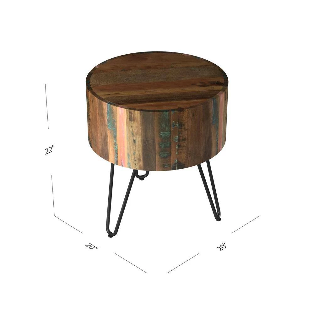 Crafted of old reclaimed wood that bears the occasional knot, nick or crack that speaks to its provenance, our round side table displays unique characteristics to ensure no 2-are exactly alike. The mango wood, which is prized for its fascinating texture and color variations, is hand finished in a natural with multi-color-wash to showcase its inherent beauty. Easy assembly, simply attach the legs. Imported, color may vary.
