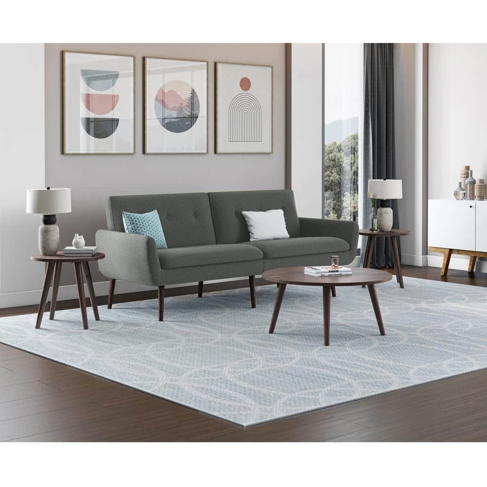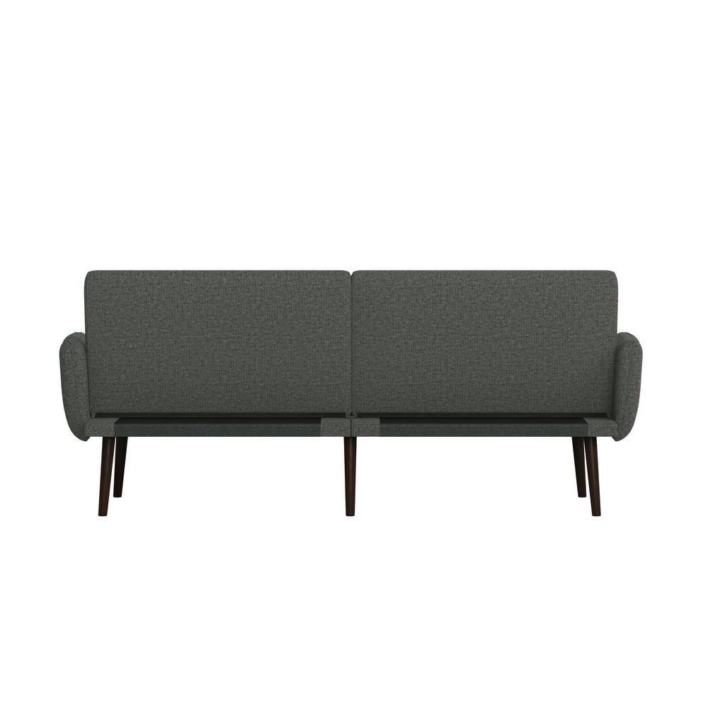 Perfect for unexpected guests or studio apartments, this ingeniously designed sofa with tapered arms converts into a full-size sleeping surface in an instant. Covered in a multi-speckled, tweed-like woven fabric made from 100% polyester, the sleeper sofa gets its mid-century style from a streamlined silhouette. Easily assembled with included tool and instructions. Imported, color may vary.