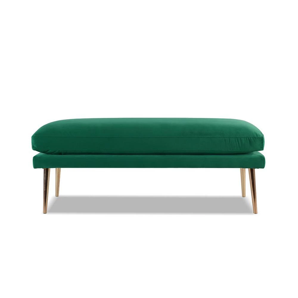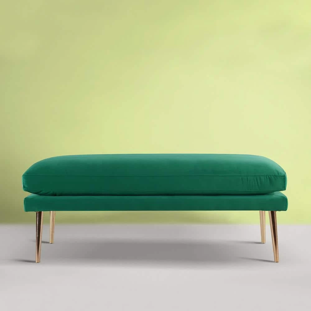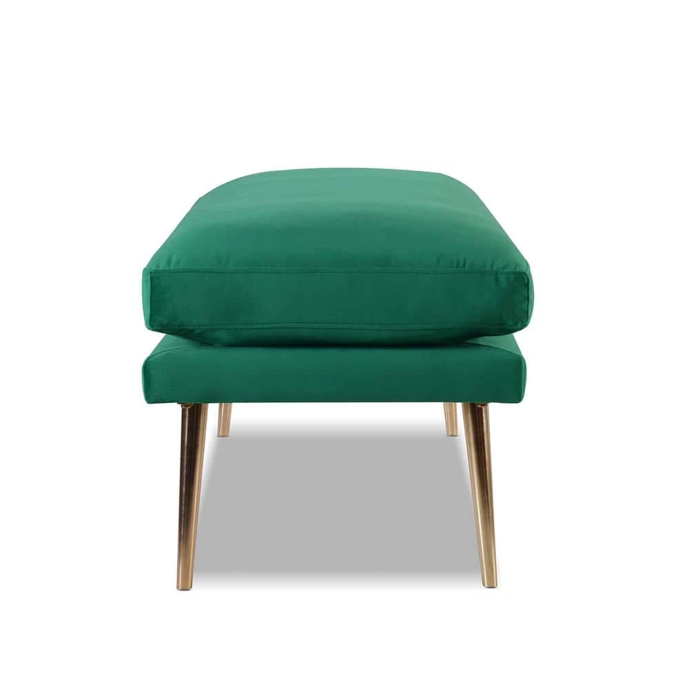 Glamorous and stylish are what best describe the Oliver Entryway Bench Collection by Sandy Wilson Home. You would think the dazzling looks of this modern mid-century style bench with its polished gold legs and plush down pillow top cushion belong in the lobby of a posh hotel or spawhy not bring that look home to your own living room for yourself to enjoy and impress your guests. Handmade with rich luxurious fabrics and a solid wood frame for exceptional quality that will last.