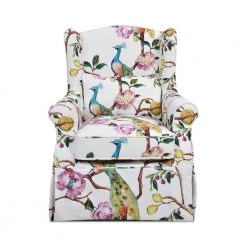 Anya Blue-Teal and Yellow-Gold Floral and Leopard Velvet Boho Chic Wingback Chair by Jennifer Taylor