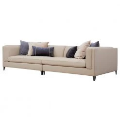 Esquire Fawn Beige Leather 4-Seater Sectional Sofa with Removable Cushions by Jennifer Taylor