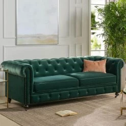 Winston 38 in. Forest Green Velvet 3-Seater Chesterfield Sofa with Nailheads by Jennifer Taylor