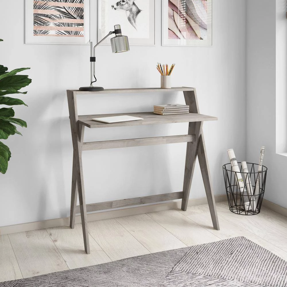 Streamlined and sturdy, this study desk exudes all the hallmarks of Scandinavian design. The desktop displays visible knots for added character and offers plenty of space for tackling paperwork, studying or holding a laptop. Easily assembled with included tool and instructions. Imported, color may vary.