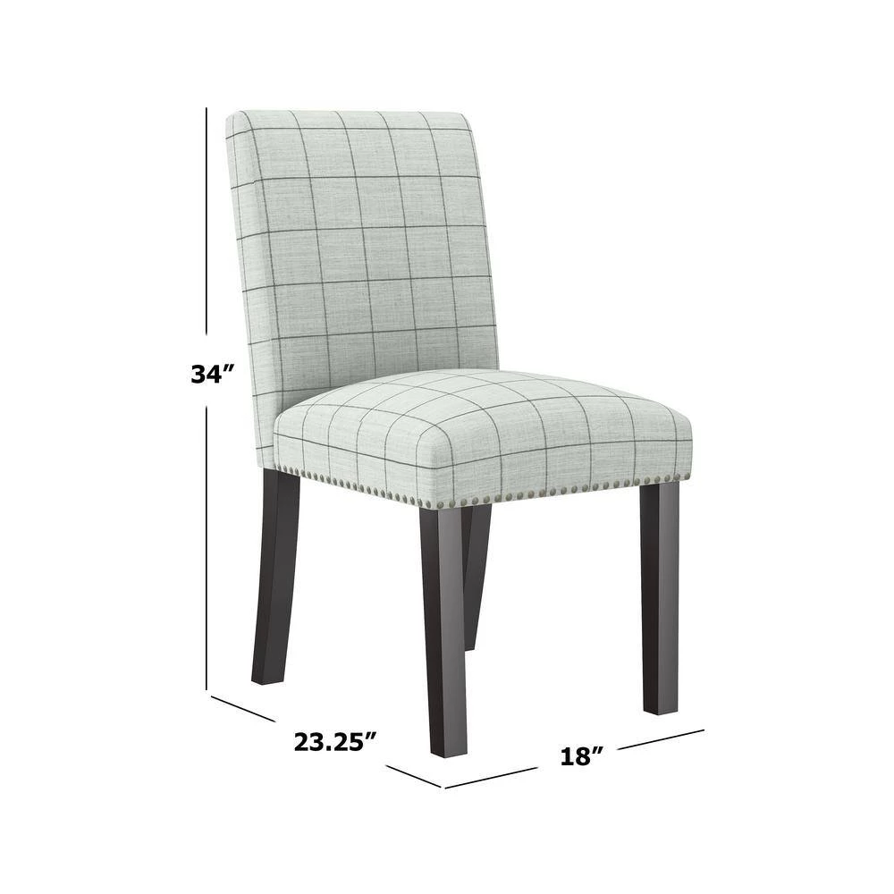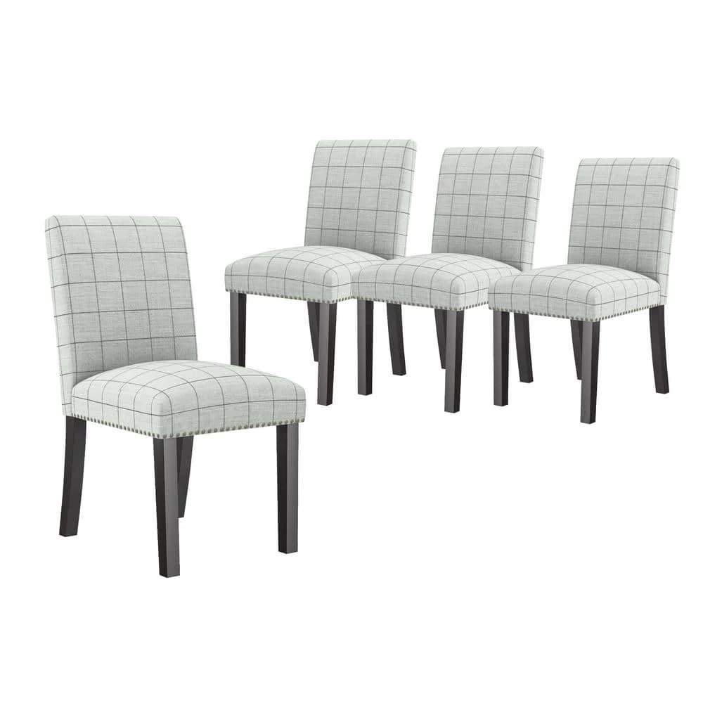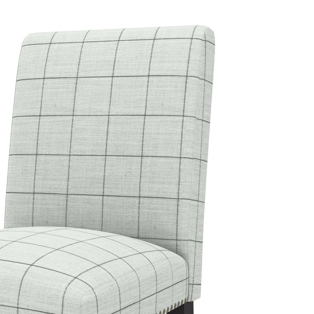 This set of 4-armless dining chairs features a fully upholstered seat and back with hand tacked pewter nail head trim for a simple and polished style. A comfortable and elegant addition to the dining table or simply anywhere you might need an extra seat. Takes less than 15-minutes to assemble each chair with included tool and instructions. Imported, color may vary.