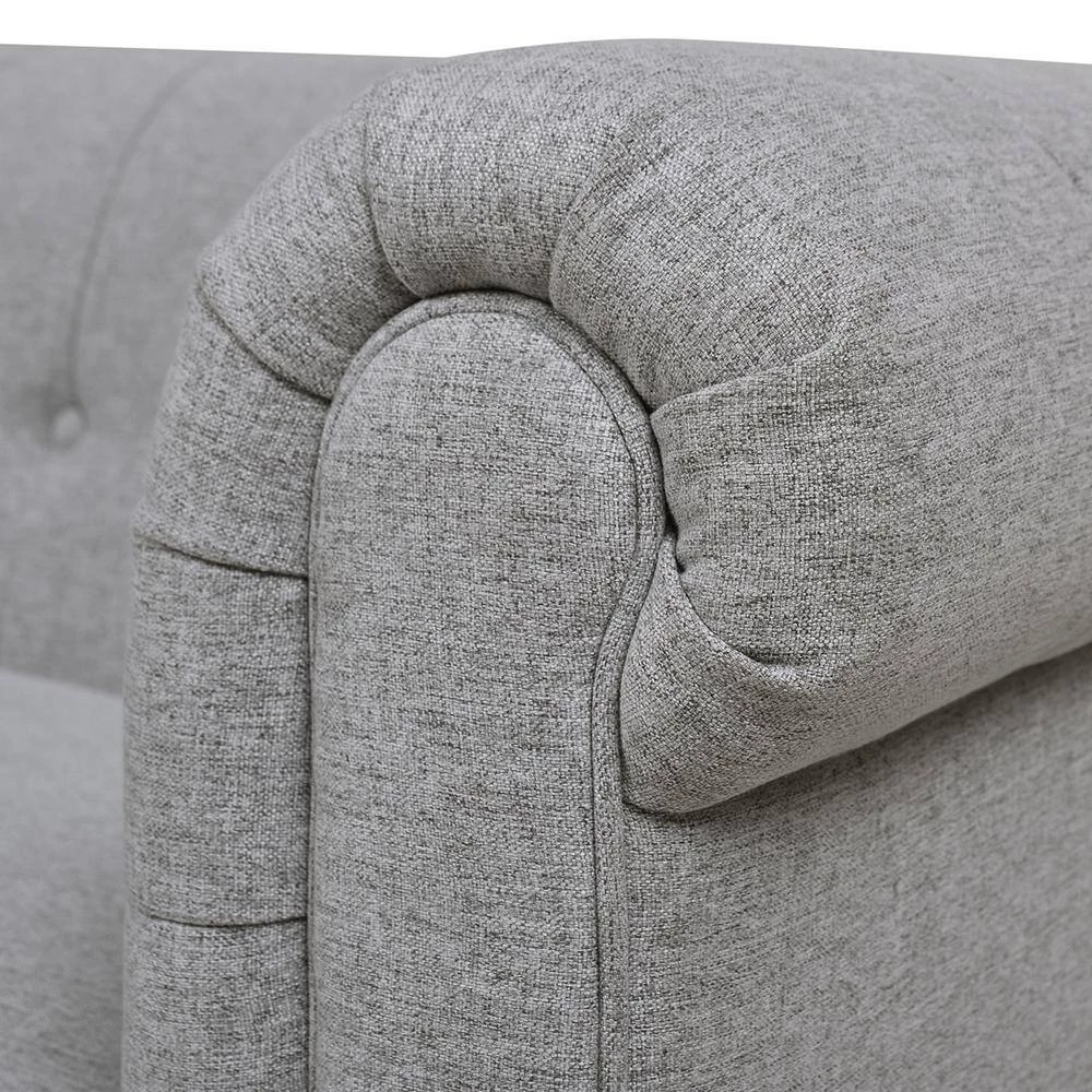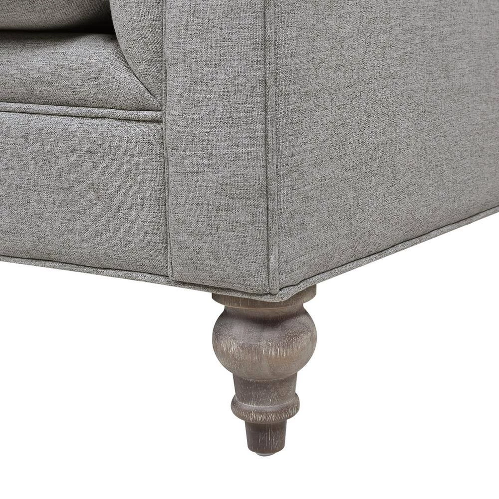The Shiloh Seating Collection by Jennifer Taylor Home embodies the perfect combination of modern farmhouse chic with its classic Chesterfield silhouette made rustic with minimal embellishments and weathered-finished wood turn legs. The lightly square tufted back and arms add just enough detail while the rolled arms and back are plush and comfortable. The seat cushions are removable and reversible.