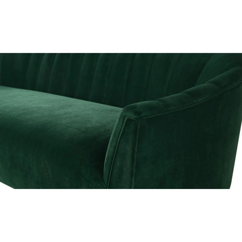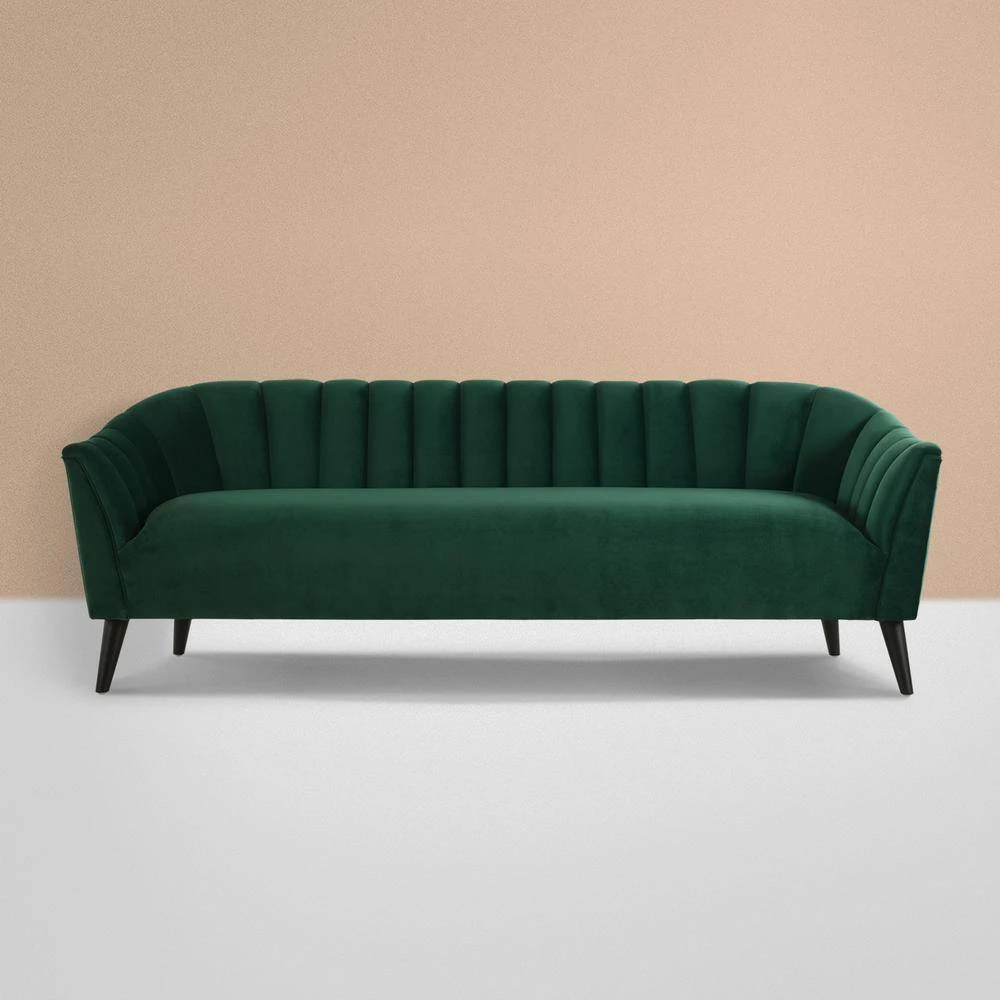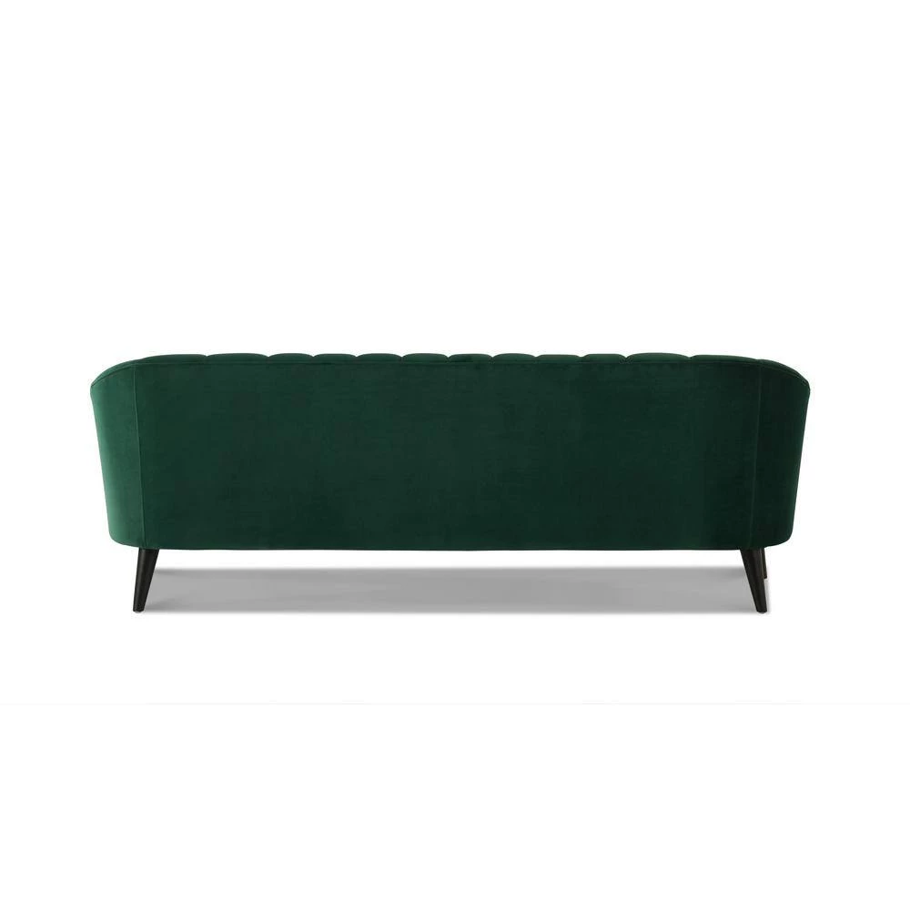 Don’t settle for boring and plain. The Sienna Collection by Sandy Wilson Home has redesigned the old fashioned mid-century sofa with a modern flair. Featuring vertical channel tufting, tall tapered solid wood legs finished in a rich dark mocha, and upholstered in soft luxurious velvet, you won’t help but feel excitement every time you sit down. This is definitely a sofa you will fall in love with. Look for the matching accent chair to create the perfect conversational set!Features:- Crafted from birch, which is a strong hardwood ideal for furniture making- Premium woven polyester fabric wrapped around high-density flame-retardant foam padding and cushion for a luxurious medium firm feel- Masterfully handmade by experienced furniture craftsmen and women- Legs: Solid wood in a Dark Mocha finish (Gold accent chair features Natural finish legs)..
